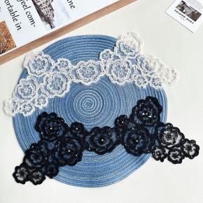 黑杏双色立体花朵蕾丝贴片