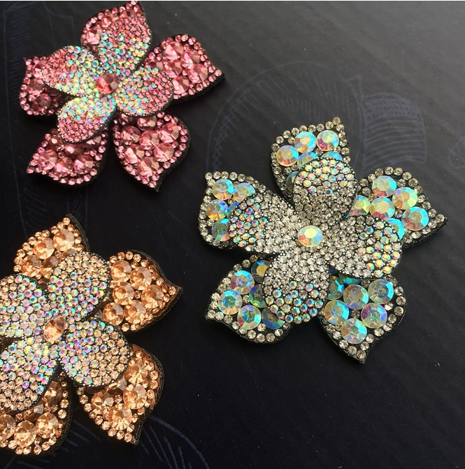 三色 热销diy饰品配件镶钻花朵金色配饰头饰发饰发夹服装鞋帽辅料