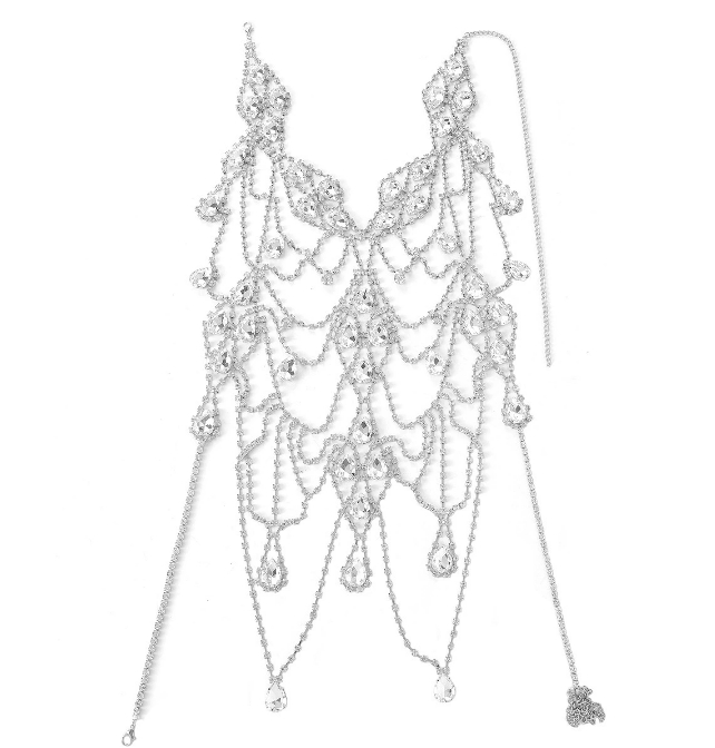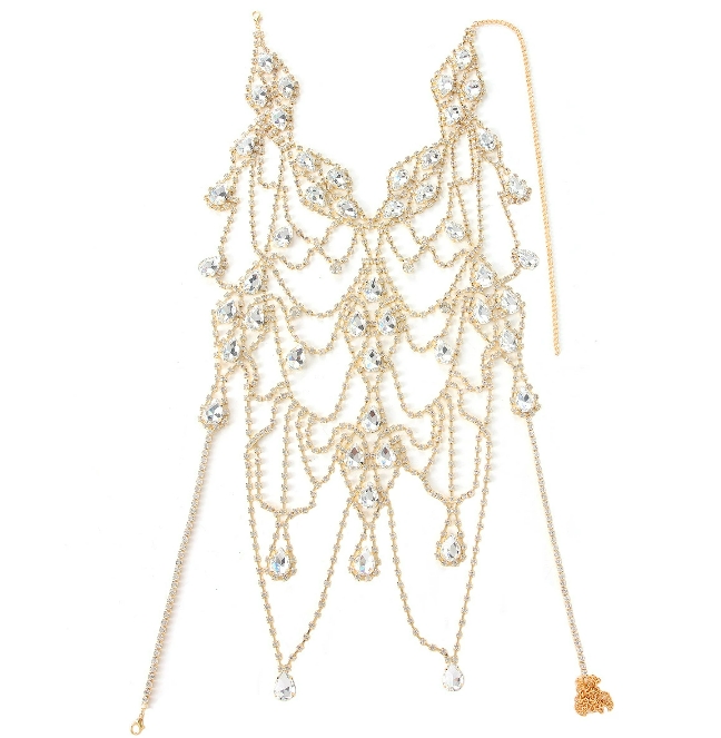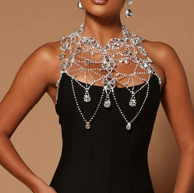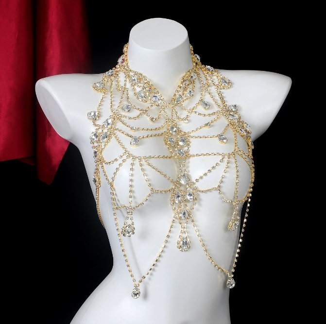 个性时尚夸张奢华晚宴走秀满钻身体链夜店闪亮水钻胸链女