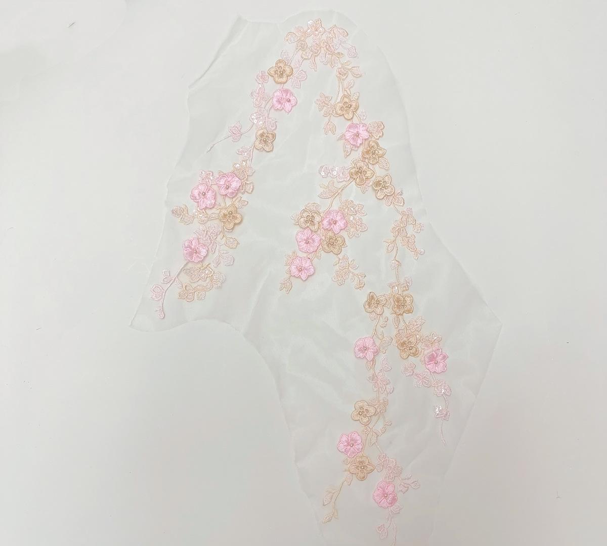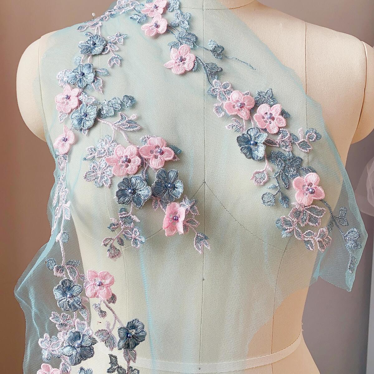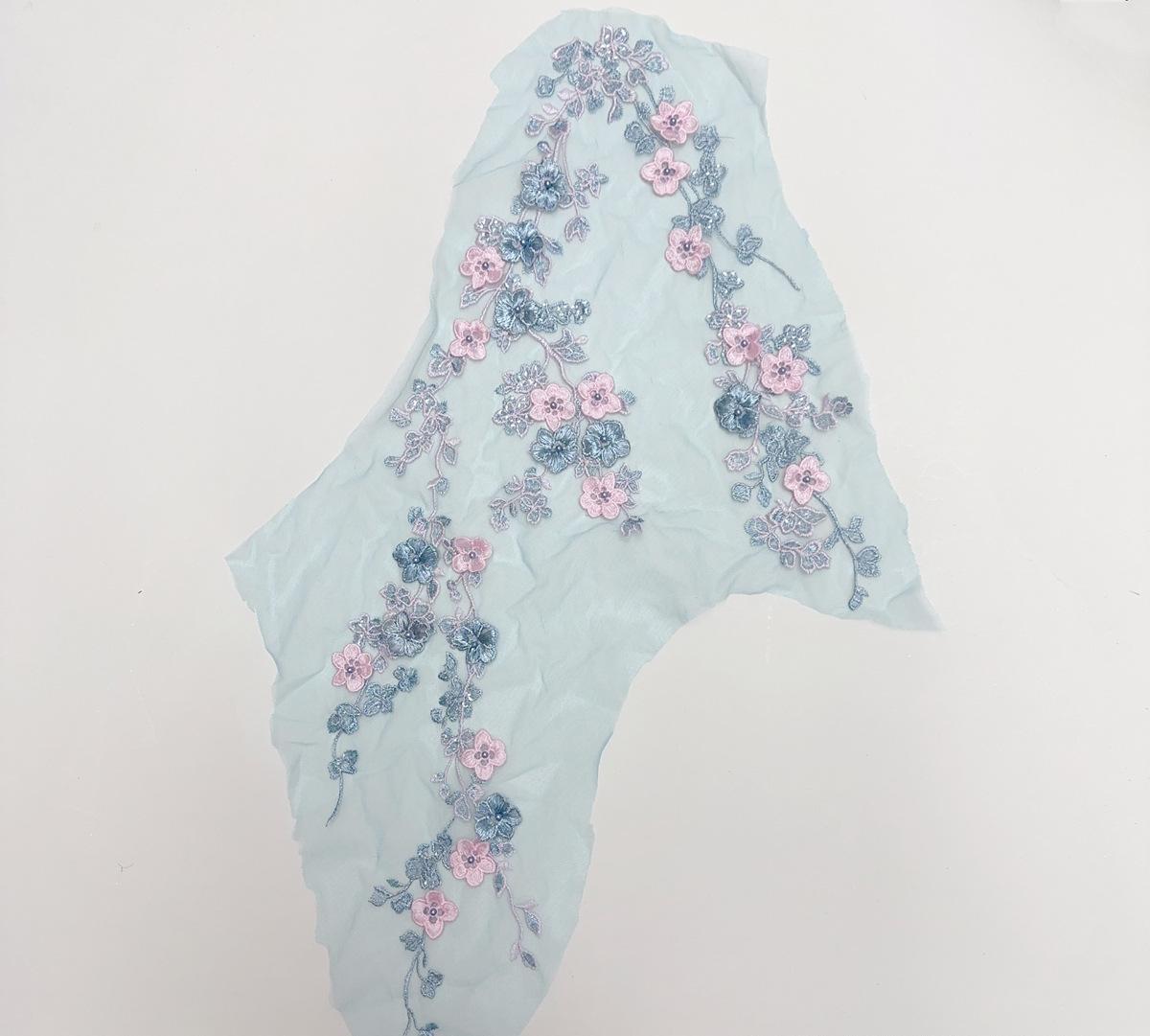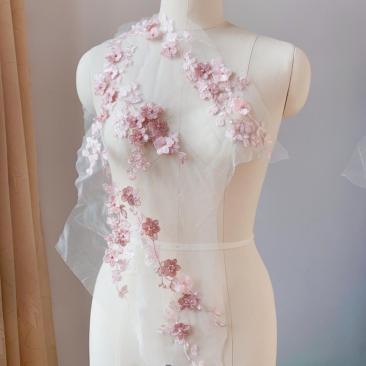 五色小梅花立体贴花钉珠蕾丝花朵头纱晚礼服材料