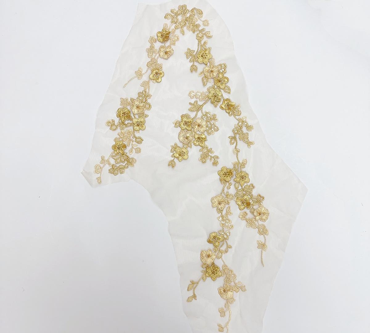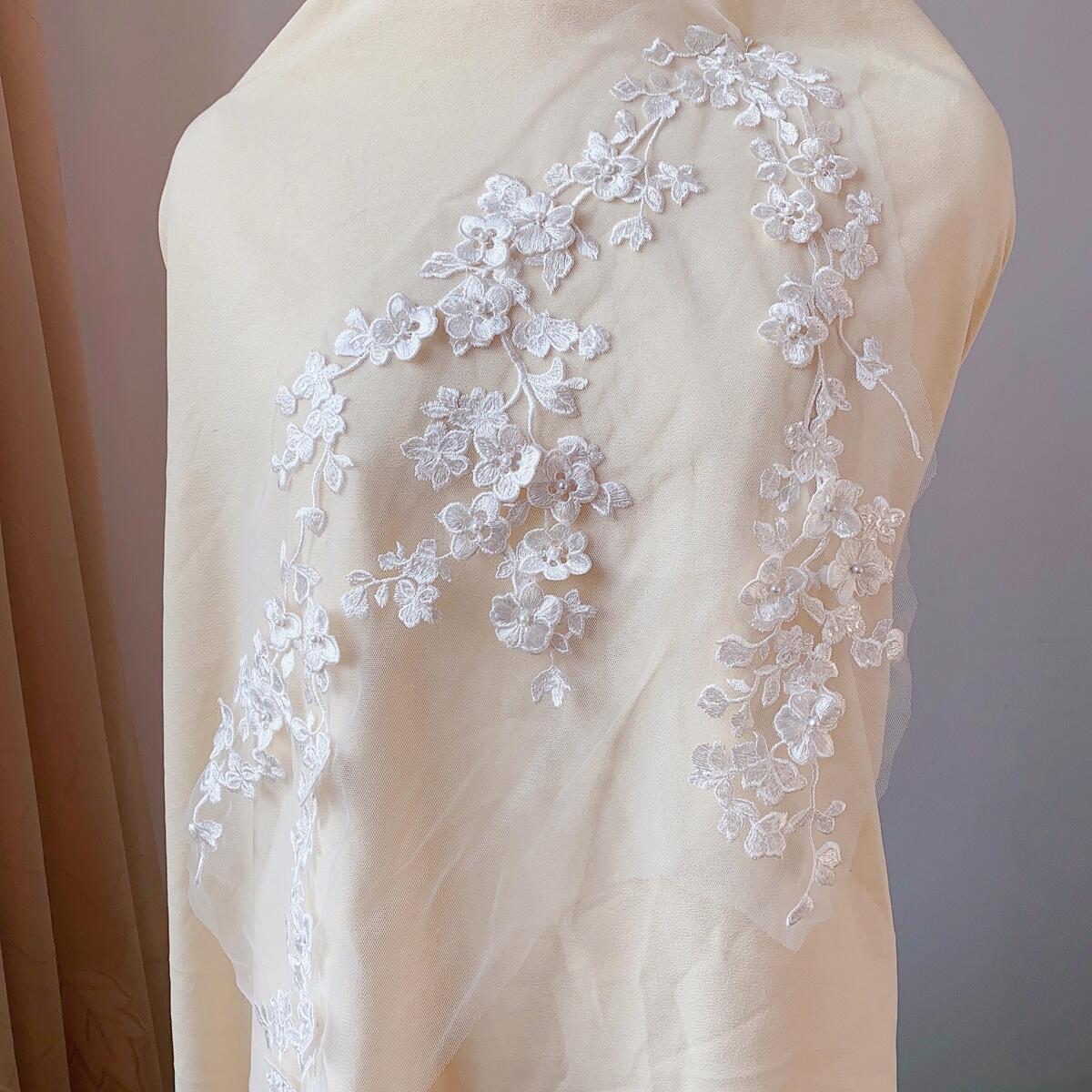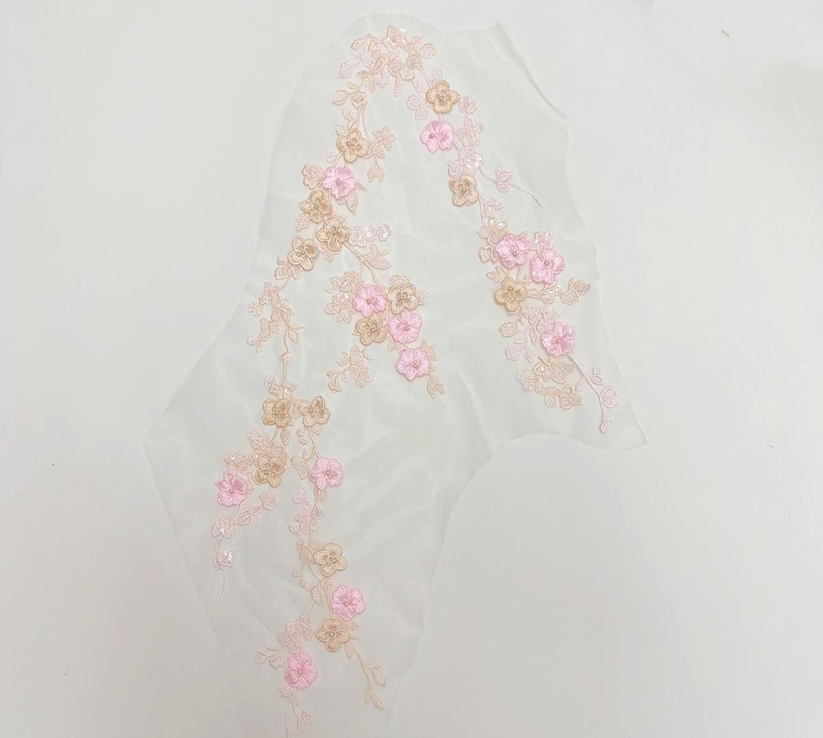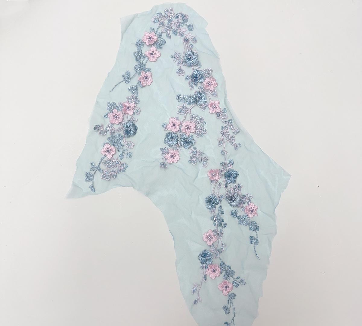 五色小梅花立体贴花钉珠蕾丝花朵头纱晚礼服材料