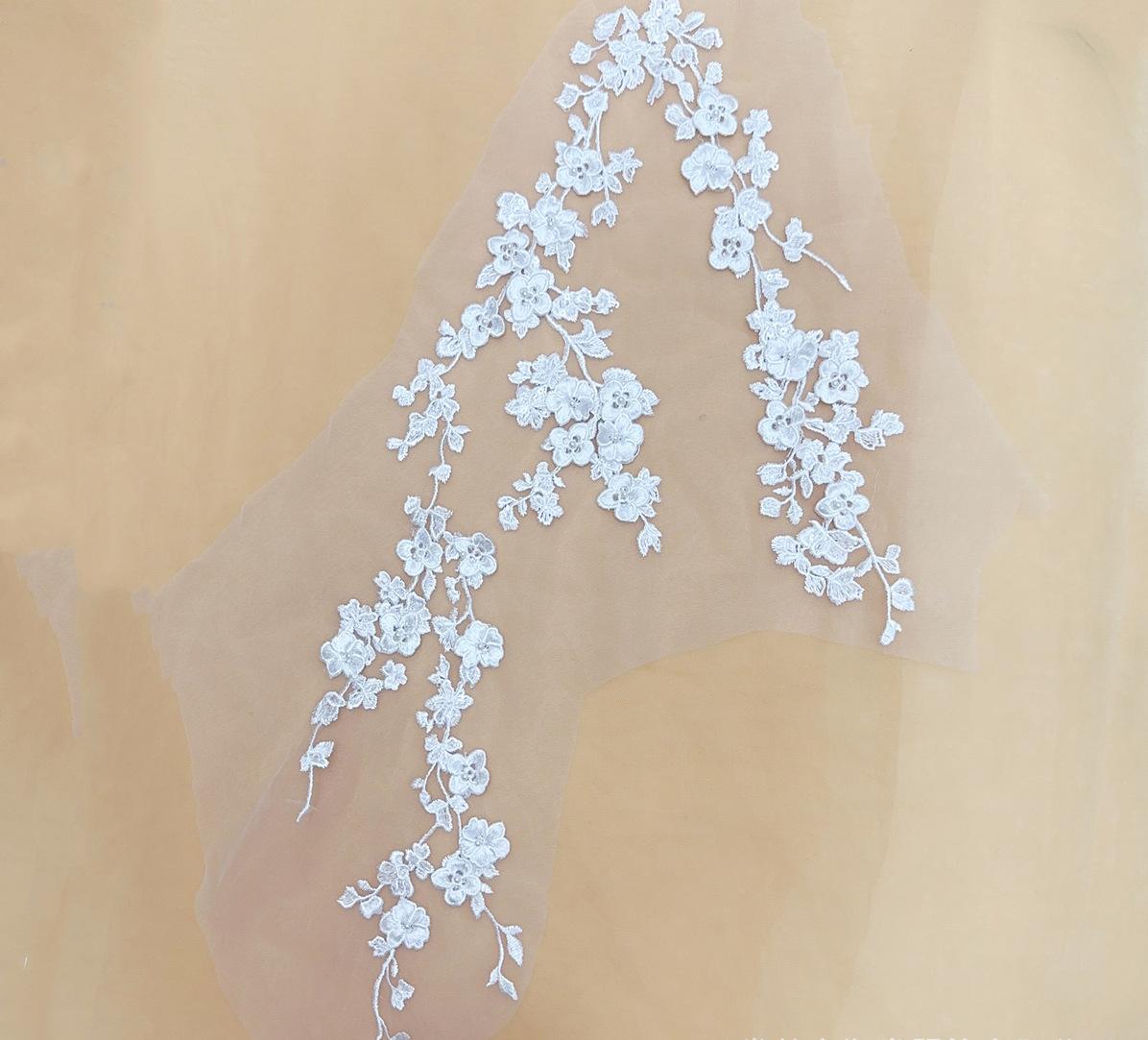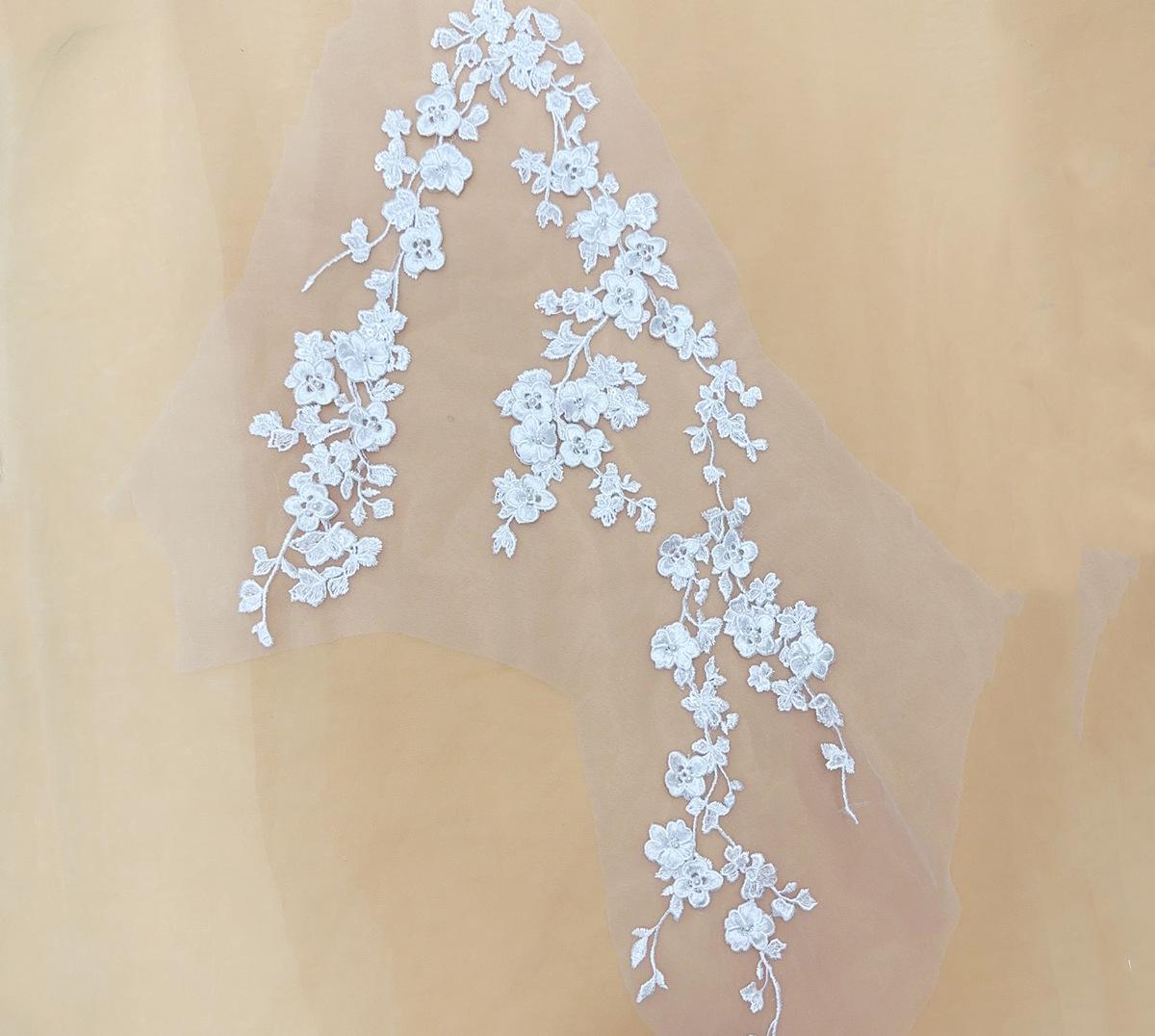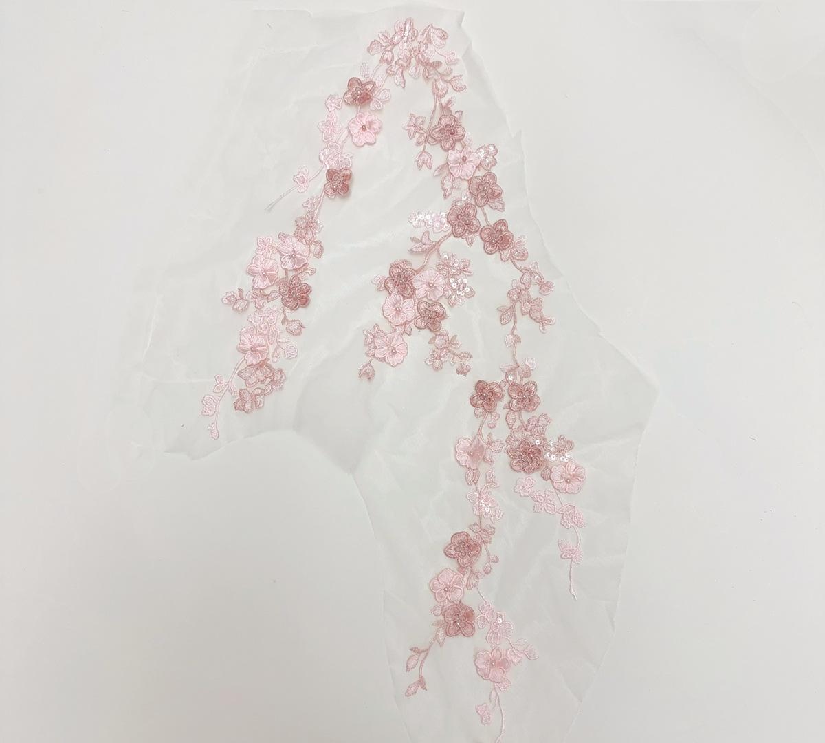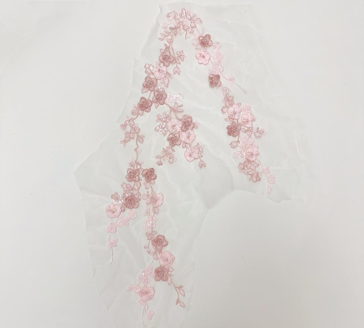 五色小梅花立体贴花钉珠蕾丝花朵头纱晚礼服材料