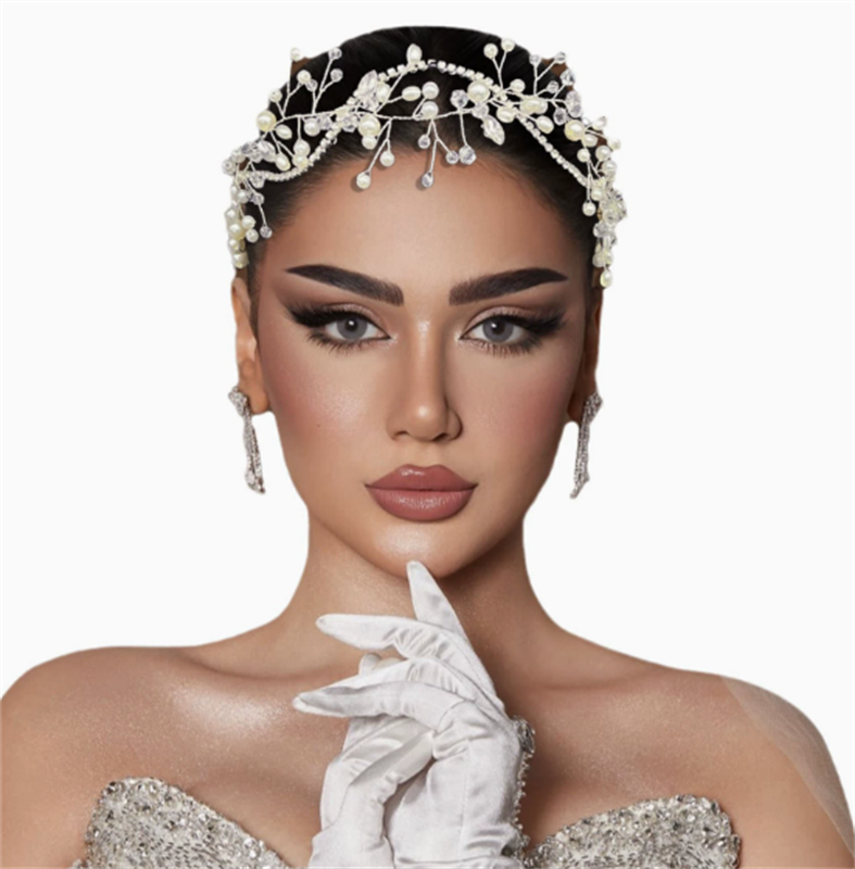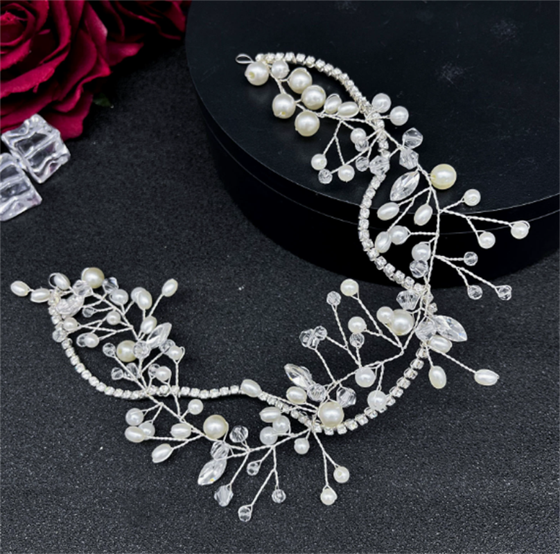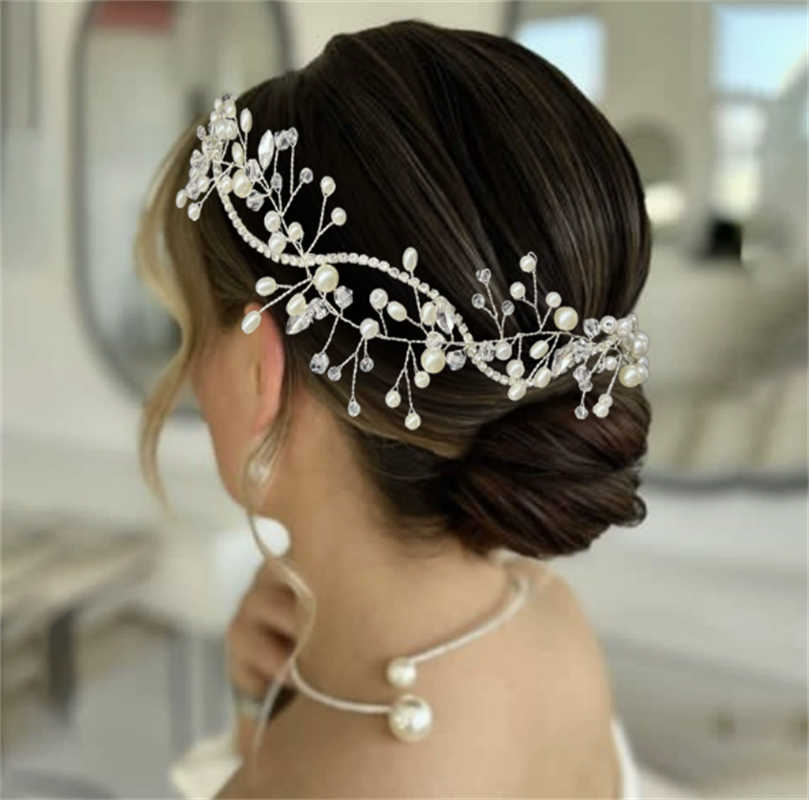 • 亚马逊新娘头饰 气质简约珍珠水钻发带 婚纱礼服发型配饰品