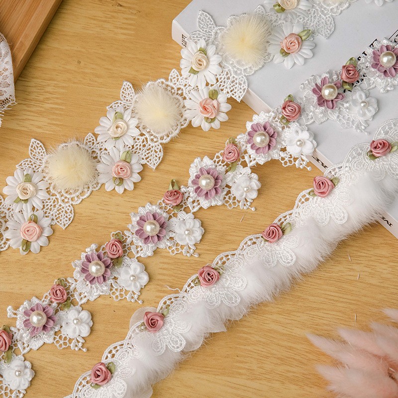 仙女手工法式蕾丝系列彩色重工贴花串珠刺绣蕾丝
