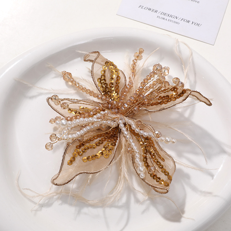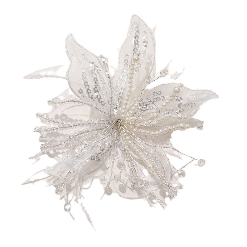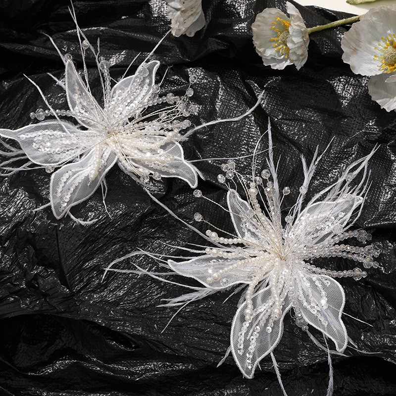 • 仙女白色蕾丝羽毛珍珠水晶花diy扭花丝花头饰夹子胸花服装配饰