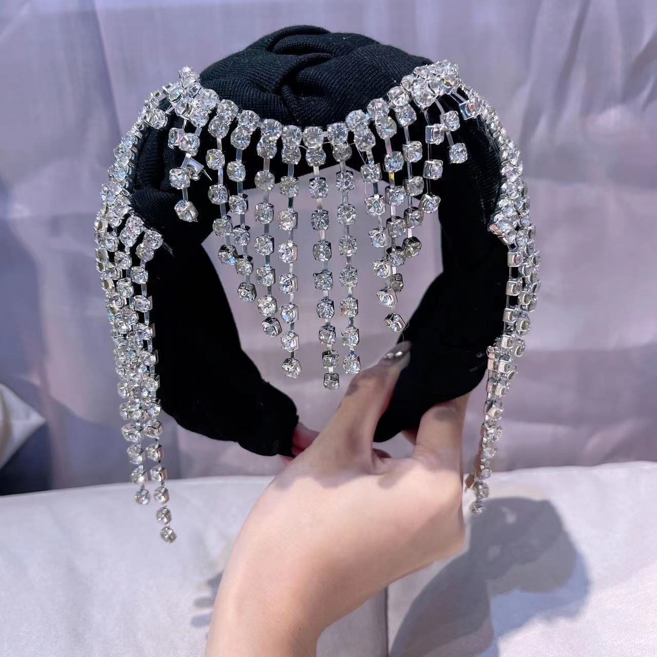 优雅华丽重工双侧三角流苏超仙气质小众法式白色流苏发箍