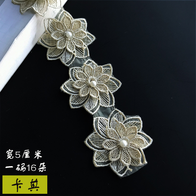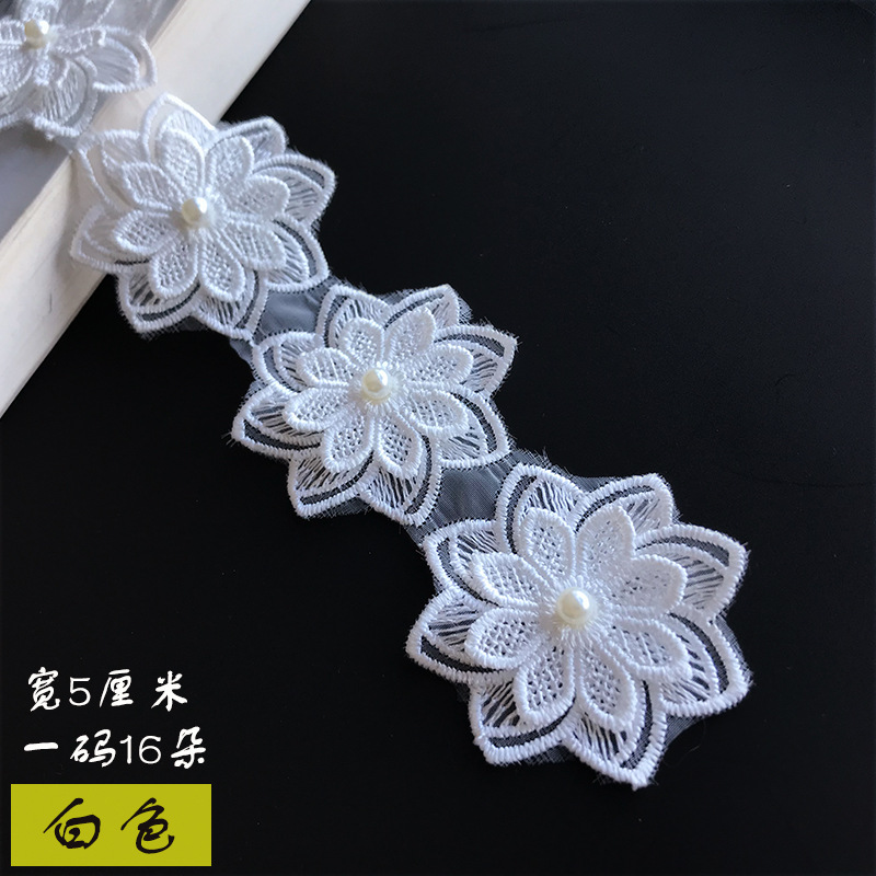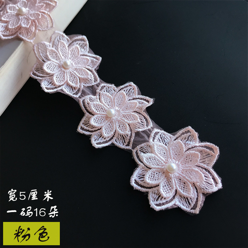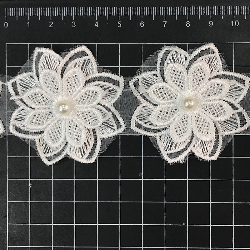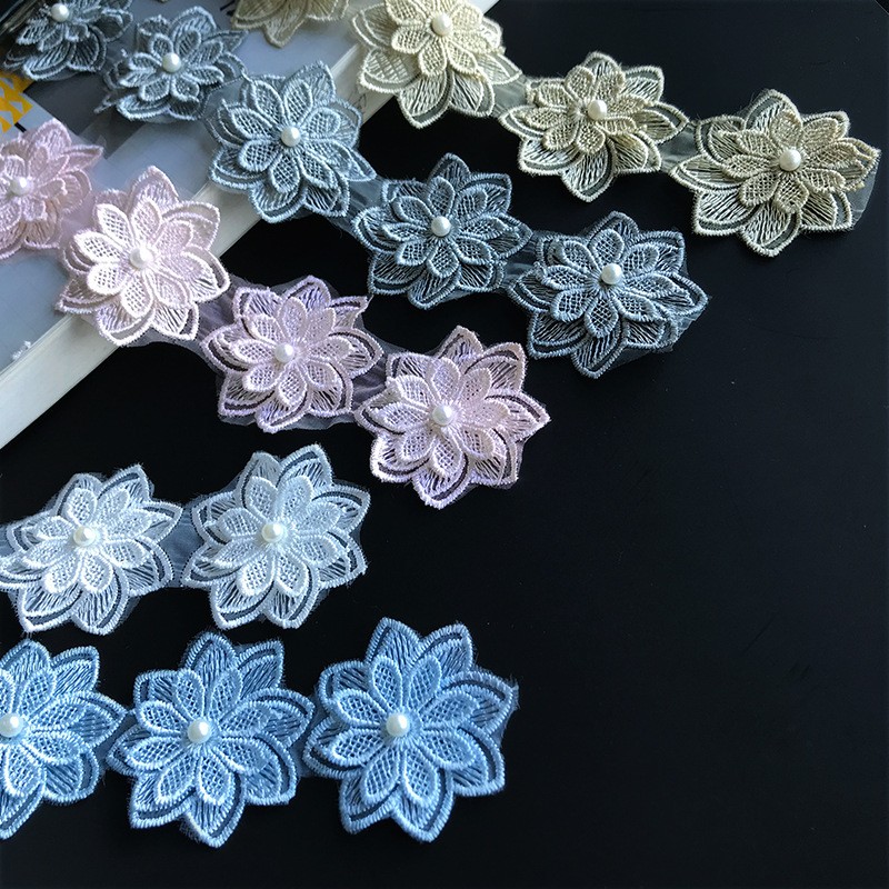 传统色彩双层蕾丝立体八瓣花刺绣服饰配饰批发