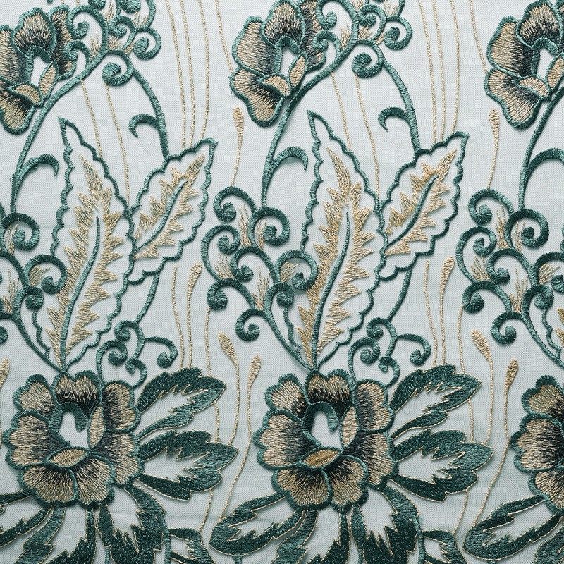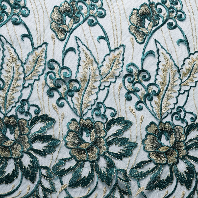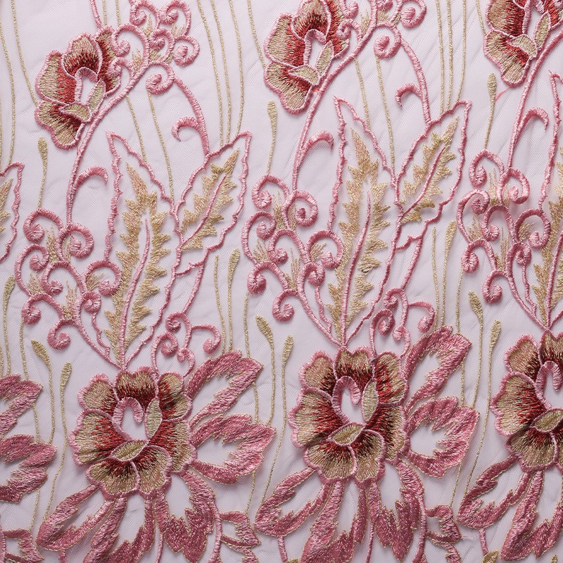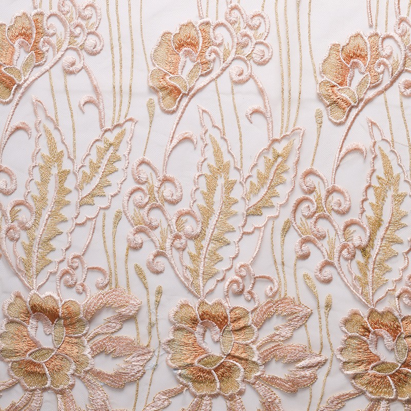 厂家定制 植物花型平绣绣花面料 春夏季中老年网纱刺绣服装面料