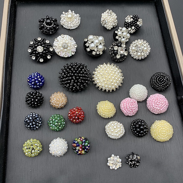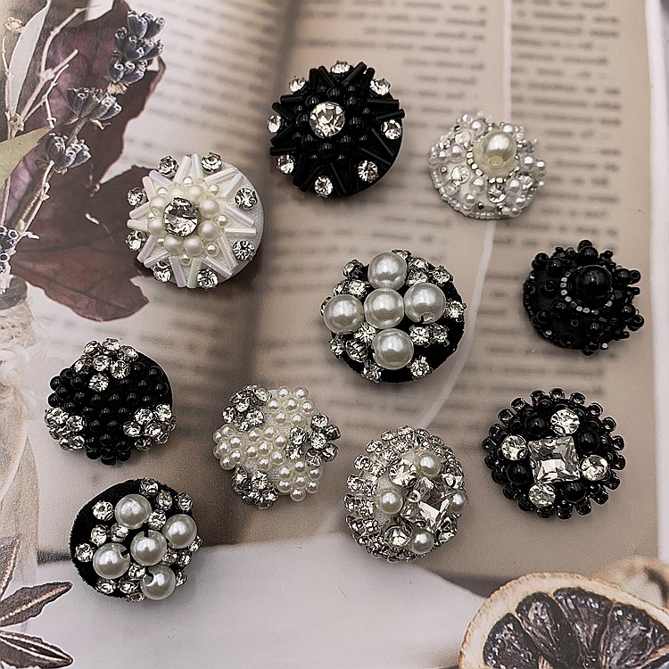 厂家现货批发手工钉珠布包珍珠水晶纽扣 珍珠扣子服装毛衣diy辅料