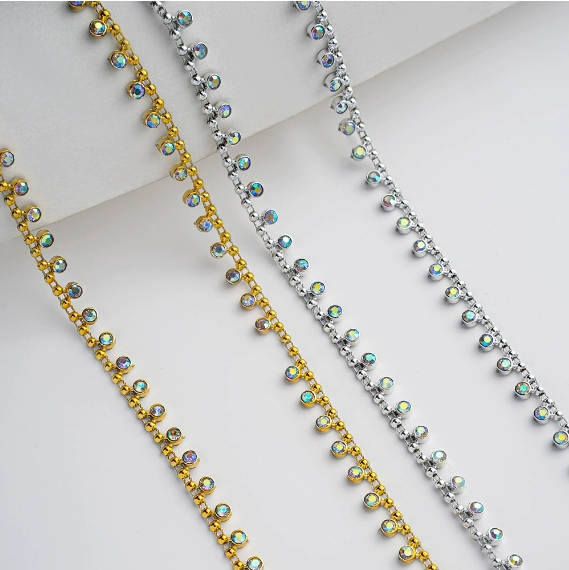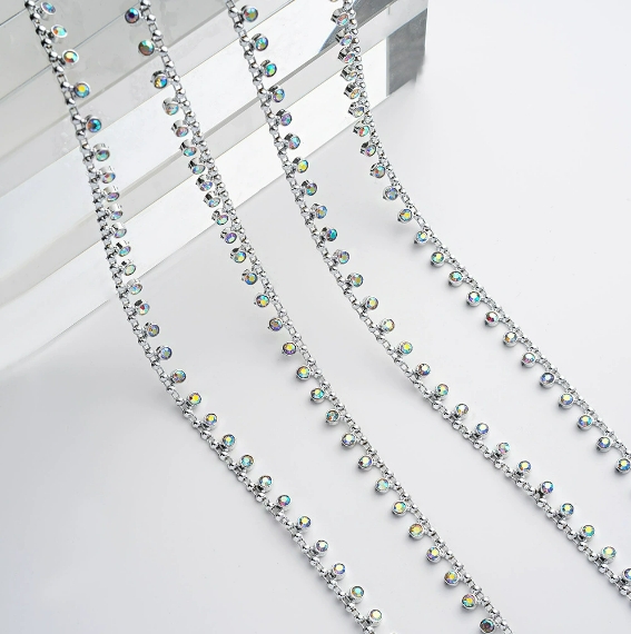 厂家UV线钻批发头饰材料发饰链条饰品配件 电镀流苏批发玻璃链条