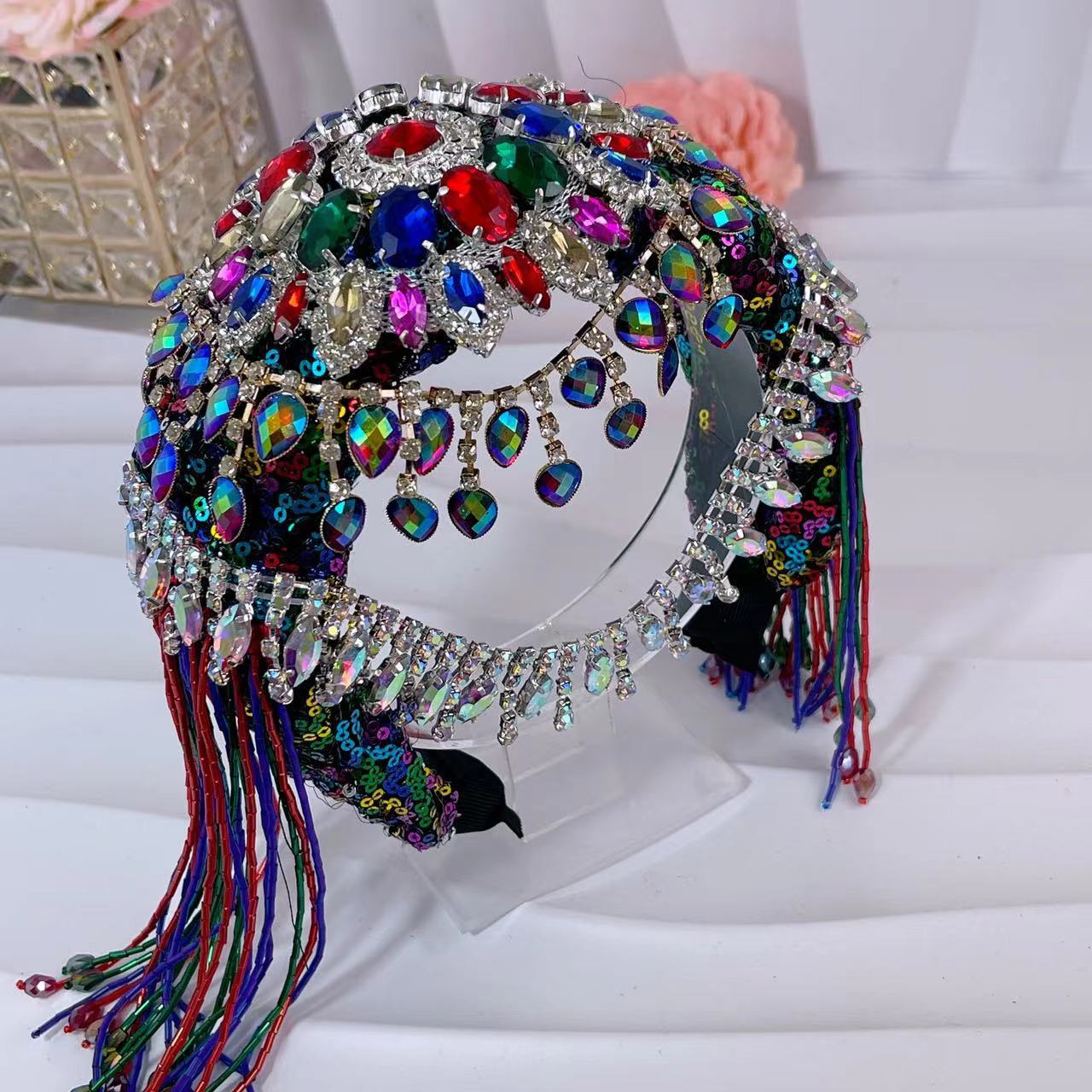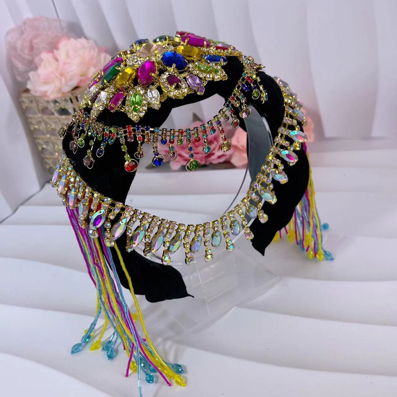 原创新品轻奢重工黑色亮片前额链小众设计流苏发箍