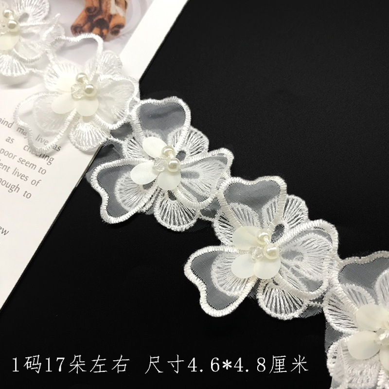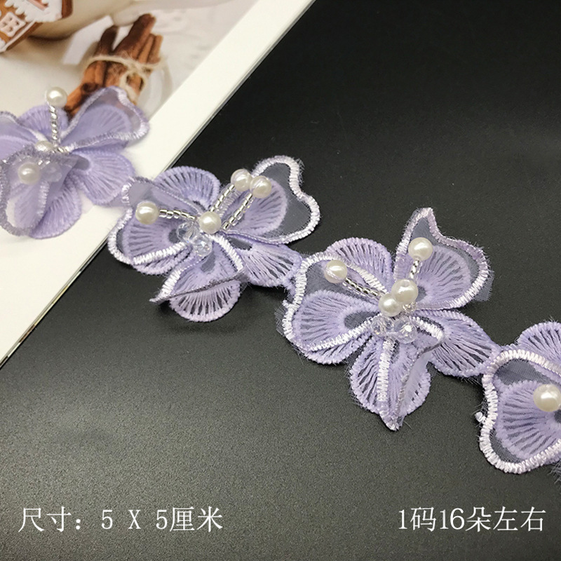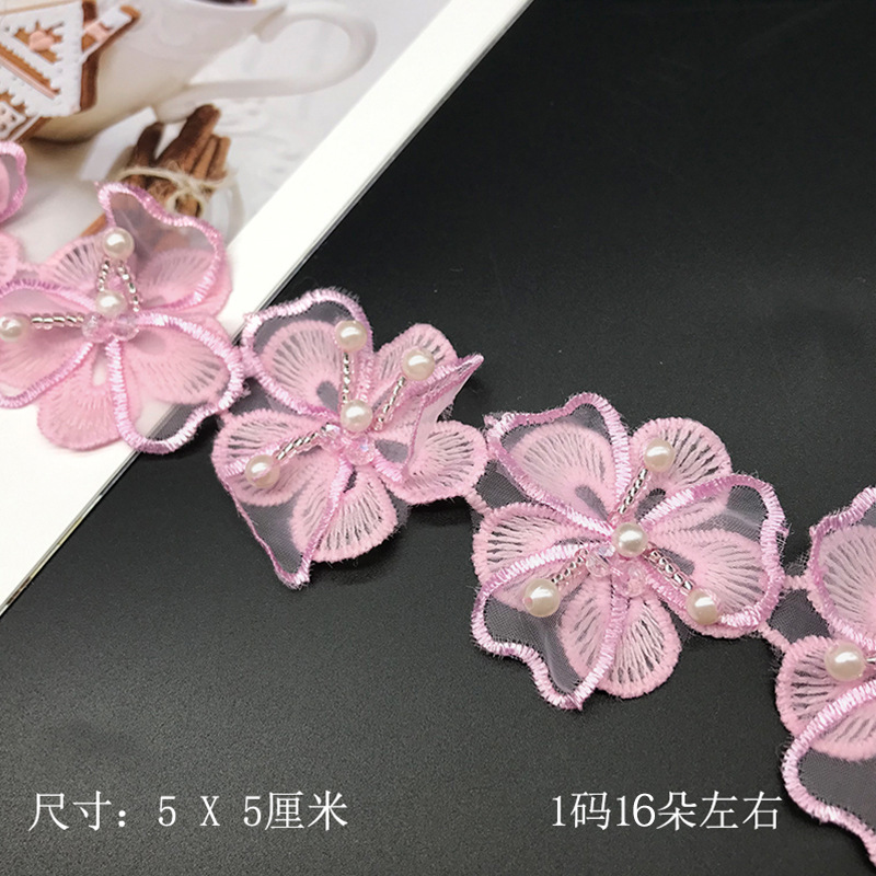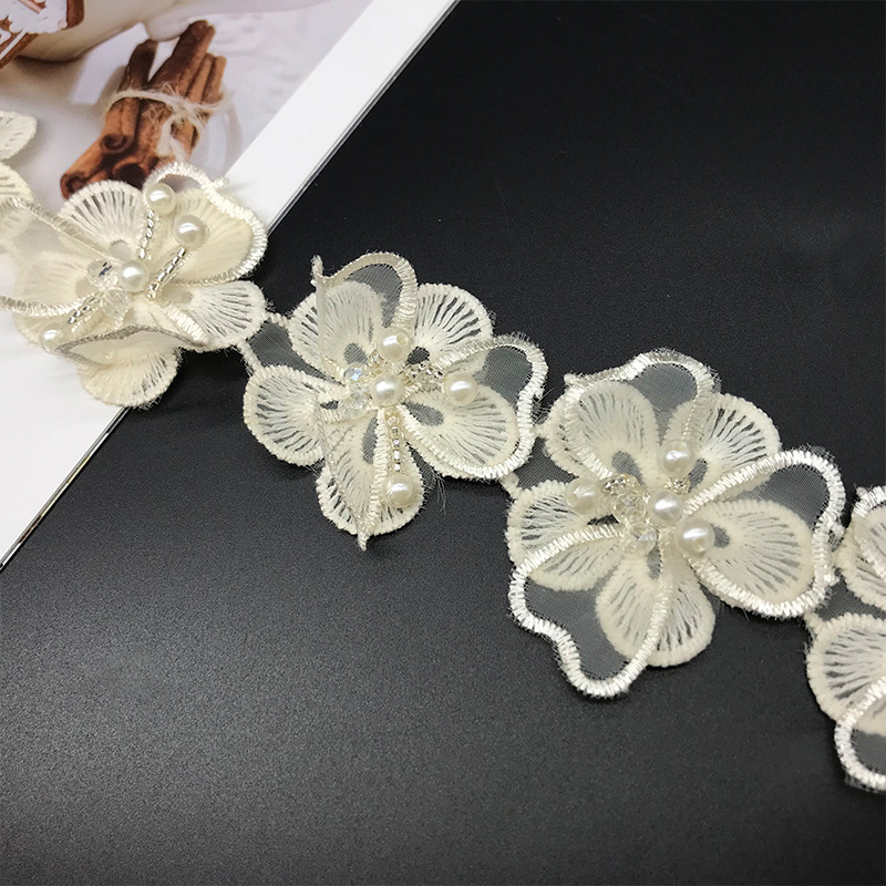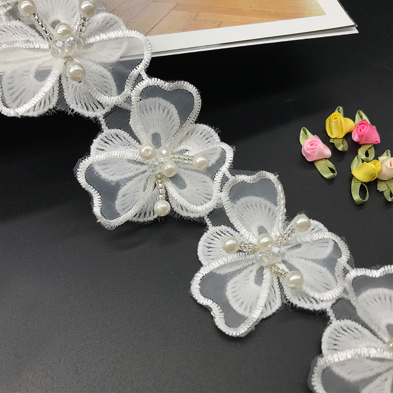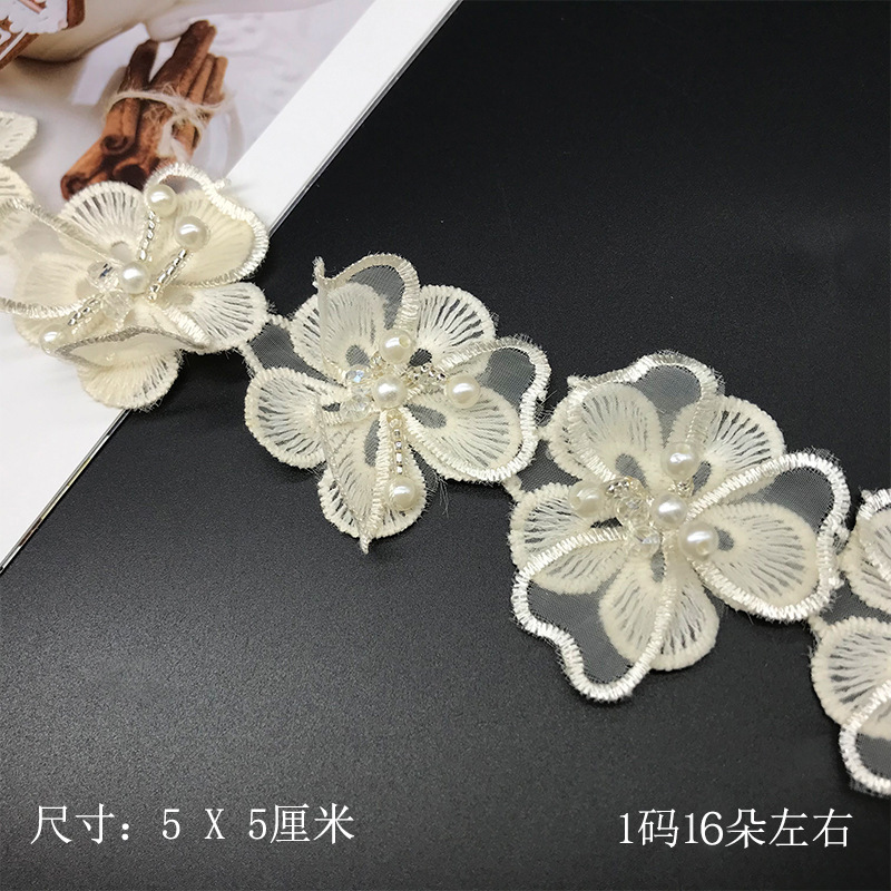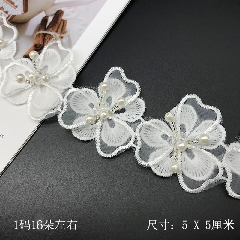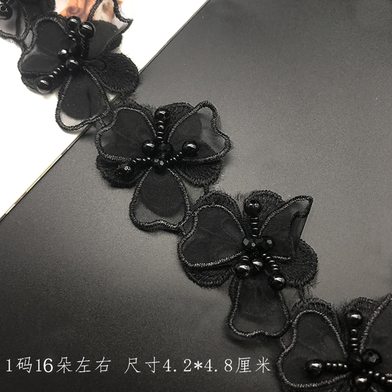 双层洛丽塔 手工串珠水晶花汉服装饰蕾丝