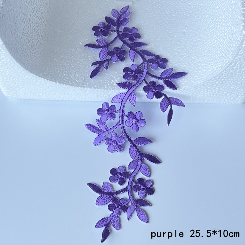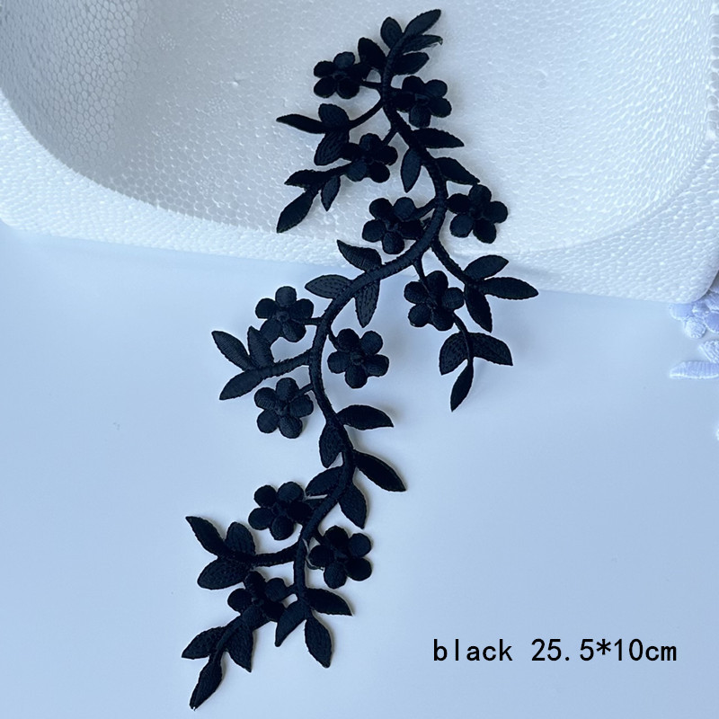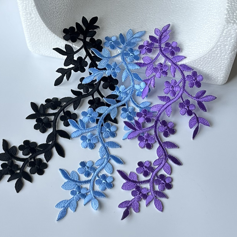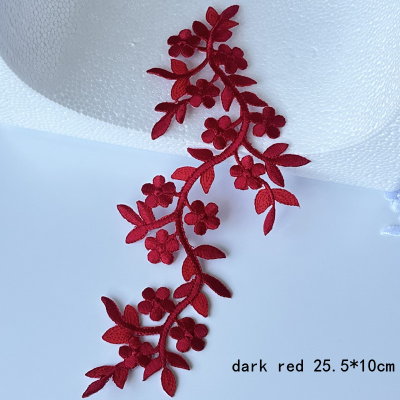 古风长条梅花刺绣布贴背胶补丁破洞贴花衣裙汉服装饰辅料DIY