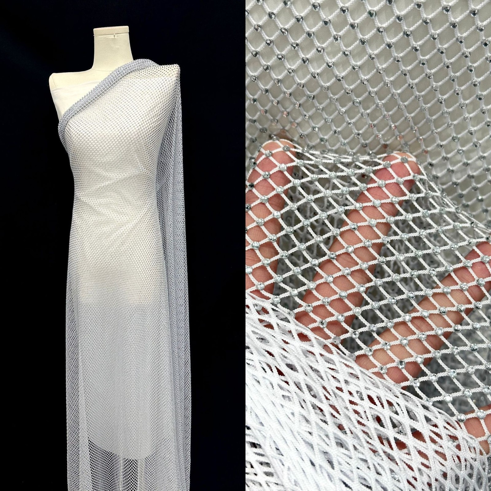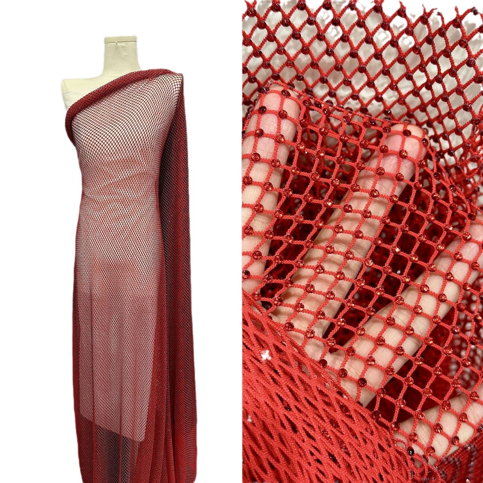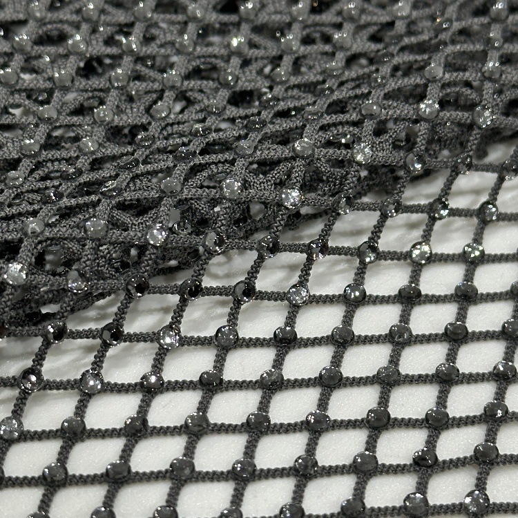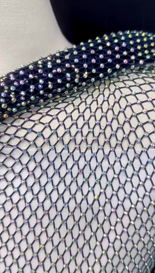 可拉伸弹力渔网格奥钻烫钻纱钻 鞋帽服饰舞蹈面料批发