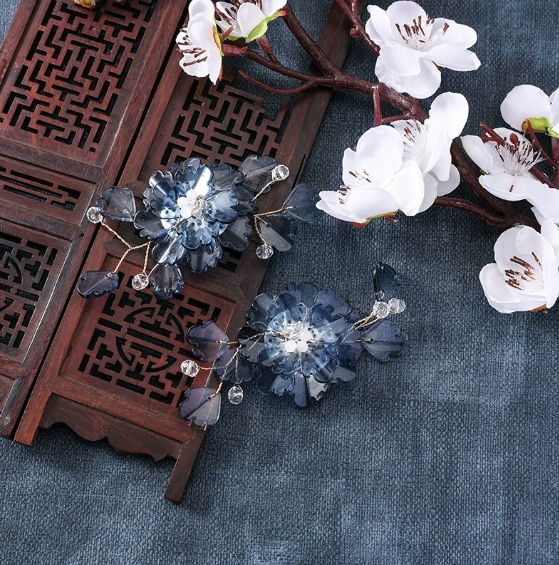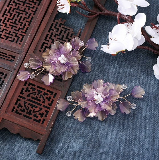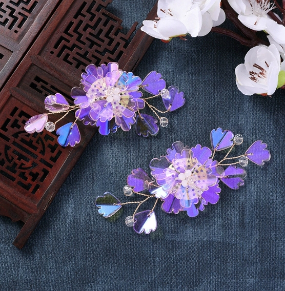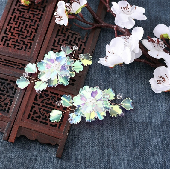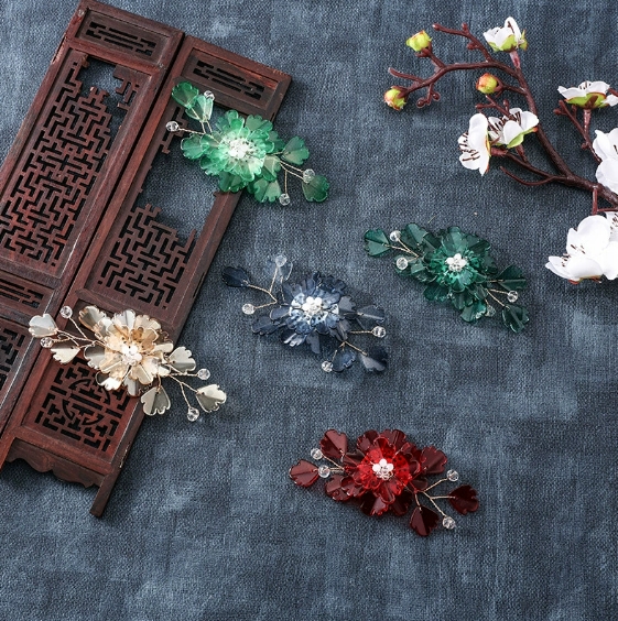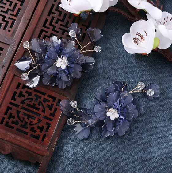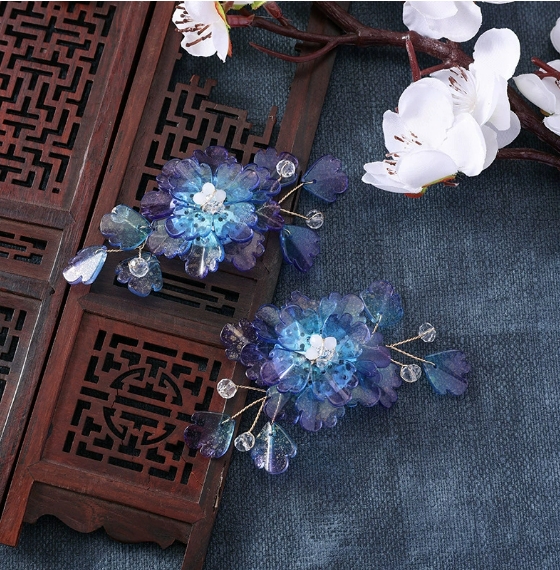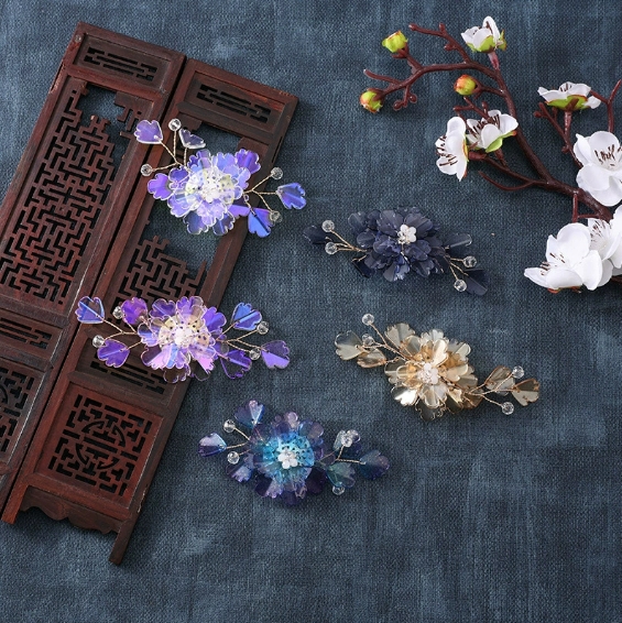 国风汉服炫彩琉璃重工饰品花朵发饰diy手工编织发簪配件新娘