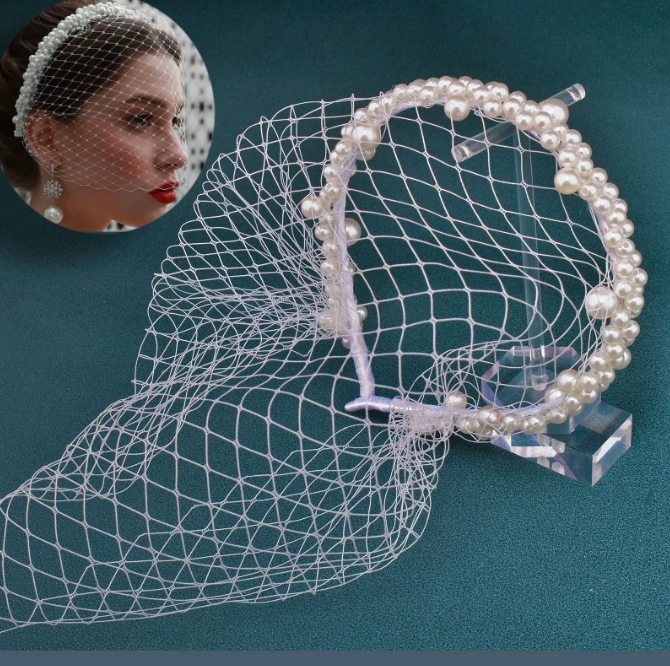 复古头带新娘遮面网纱发箍头饰气质女派对发饰遮脸面纱