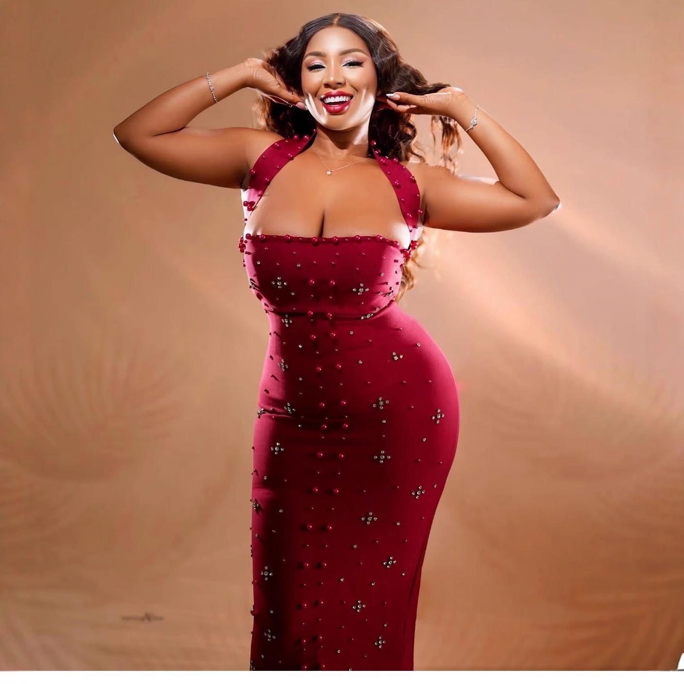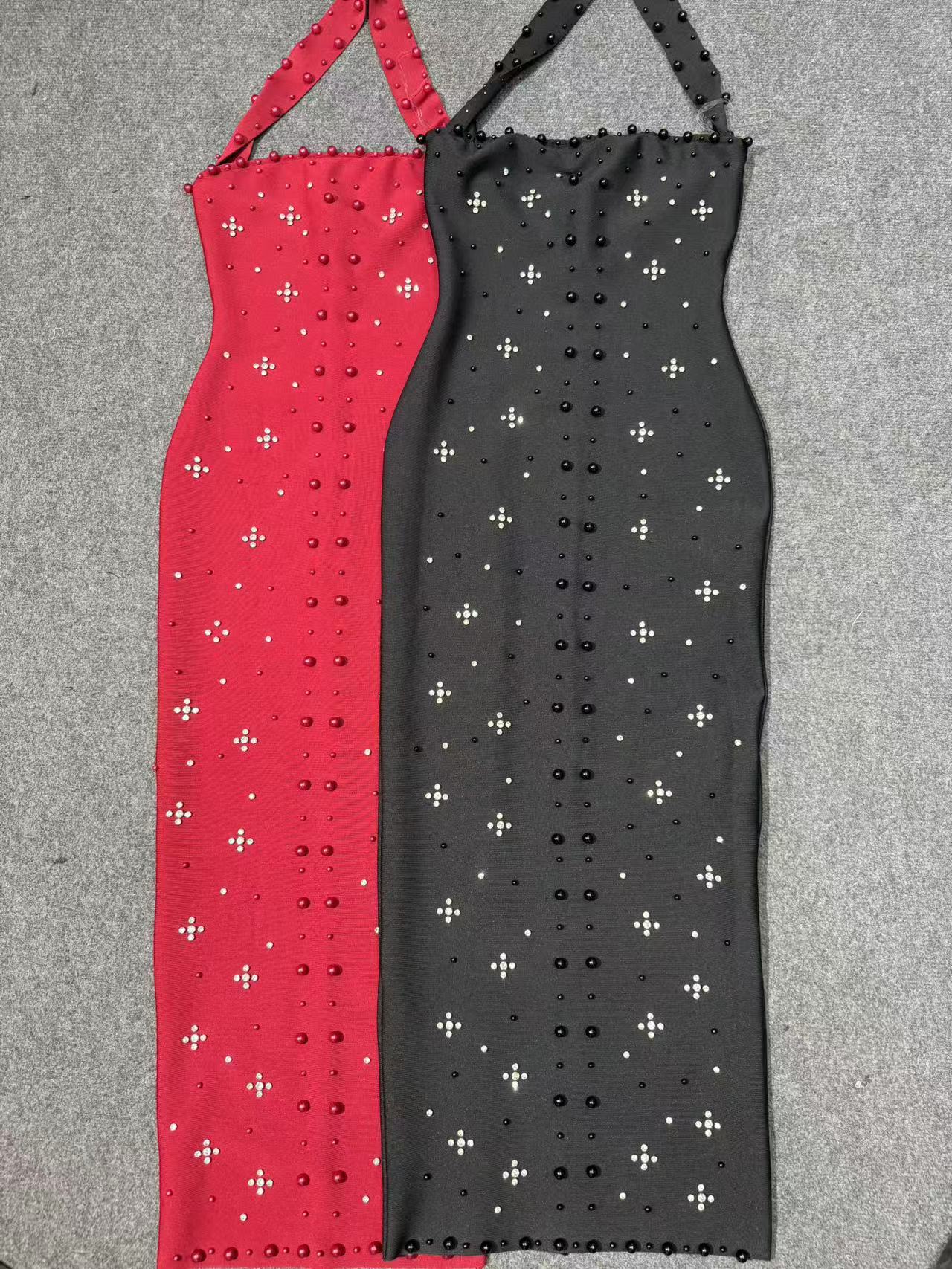 夏季新款性感挂脖小烫钻绷带裙 名媛晚宴礼服连衣裙