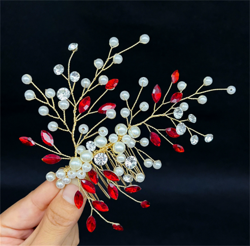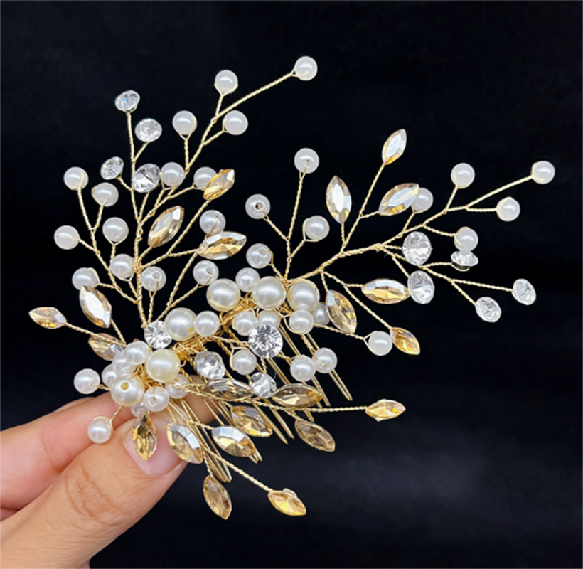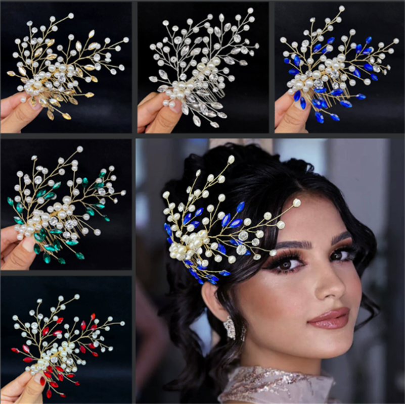 外贸新娘头饰蓝色水钻珍珠发梳 优雅女士发型配饰礼服插梳