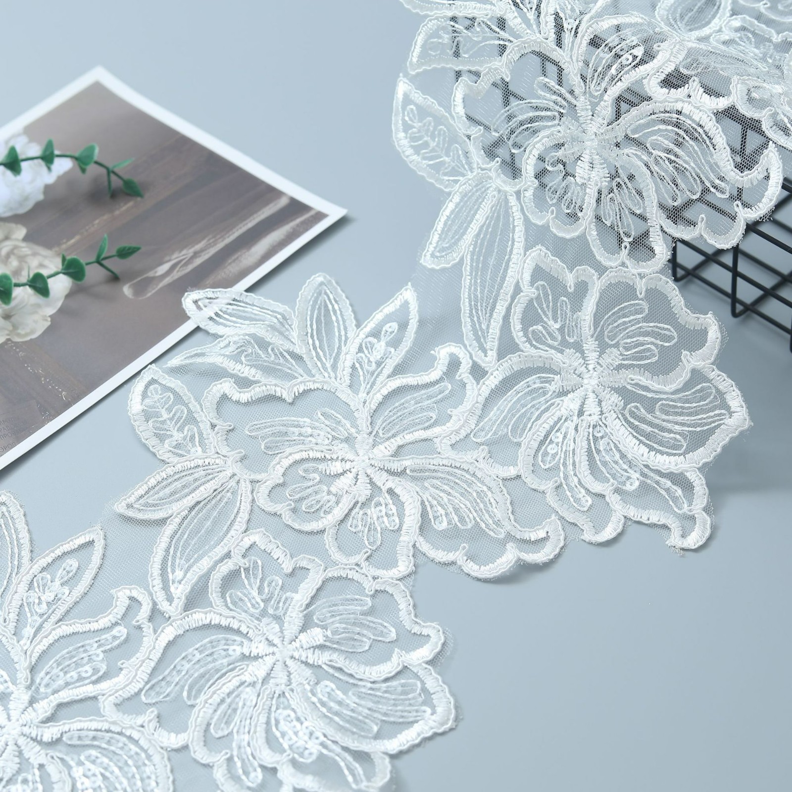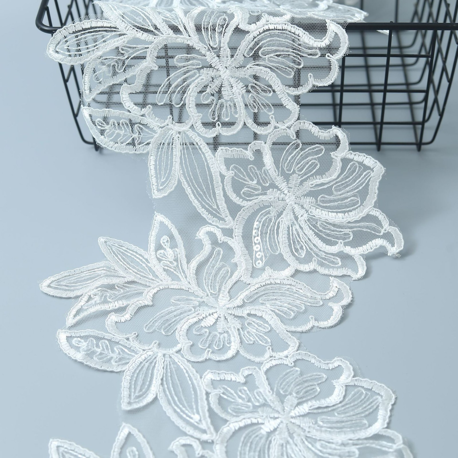 外贸跨境服装辅料车骨蕾丝花边透明珠片蕾丝婚纱礼服23CM