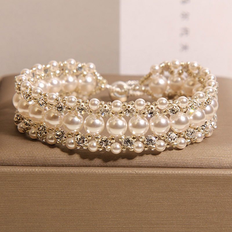 多层缠绕气质珍珠水钻手链女时尚轻奢高级感小众手饰