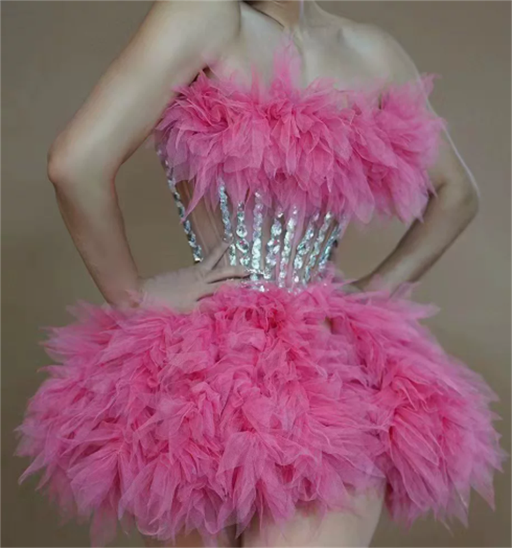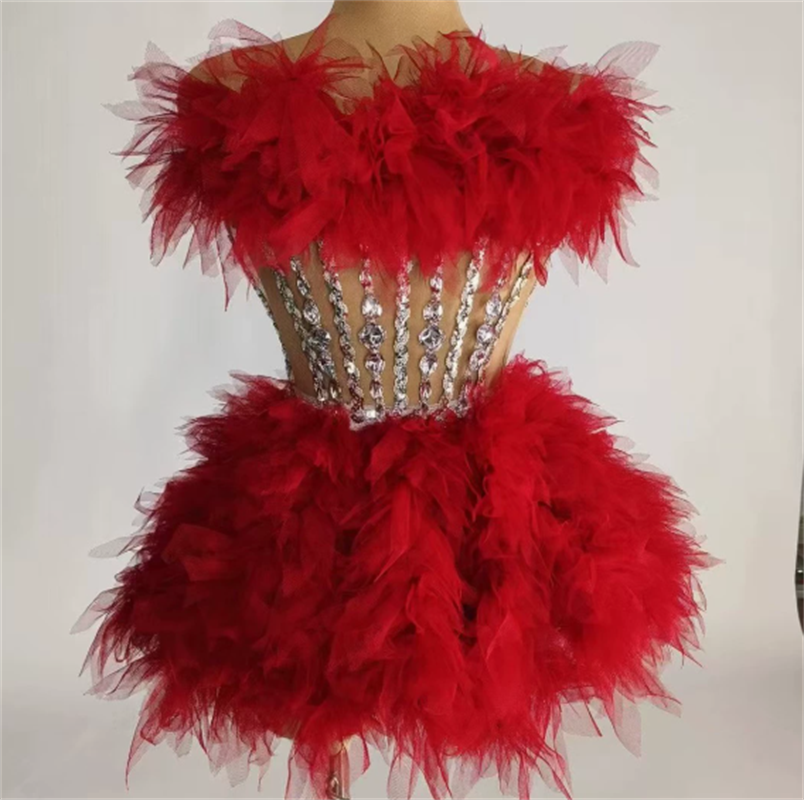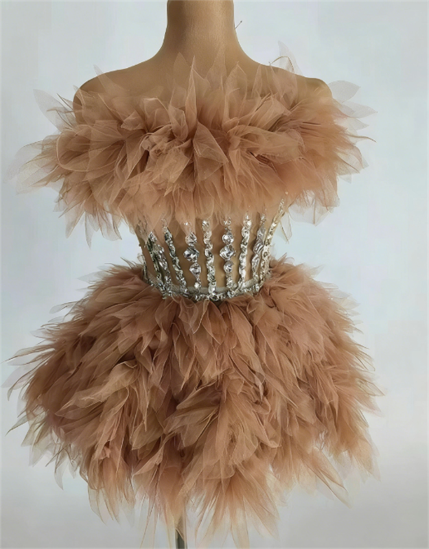 多层花边水钻束腰蓬蓬裙可爱甜美晚礼服舞台短裙工厂直售一件代发