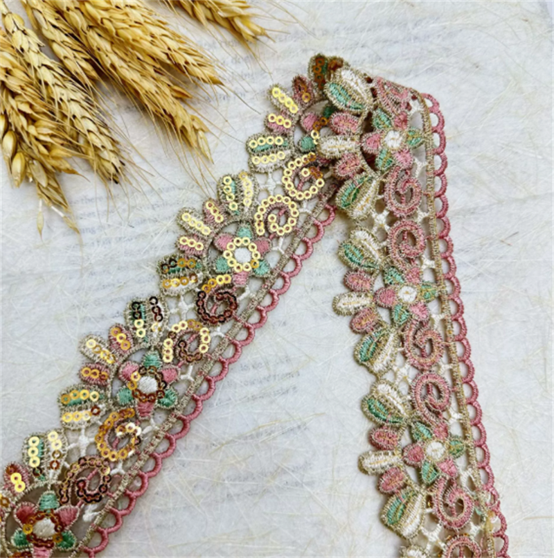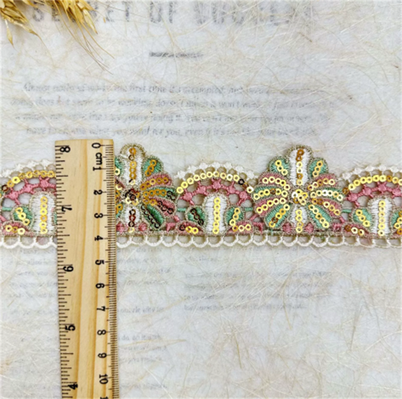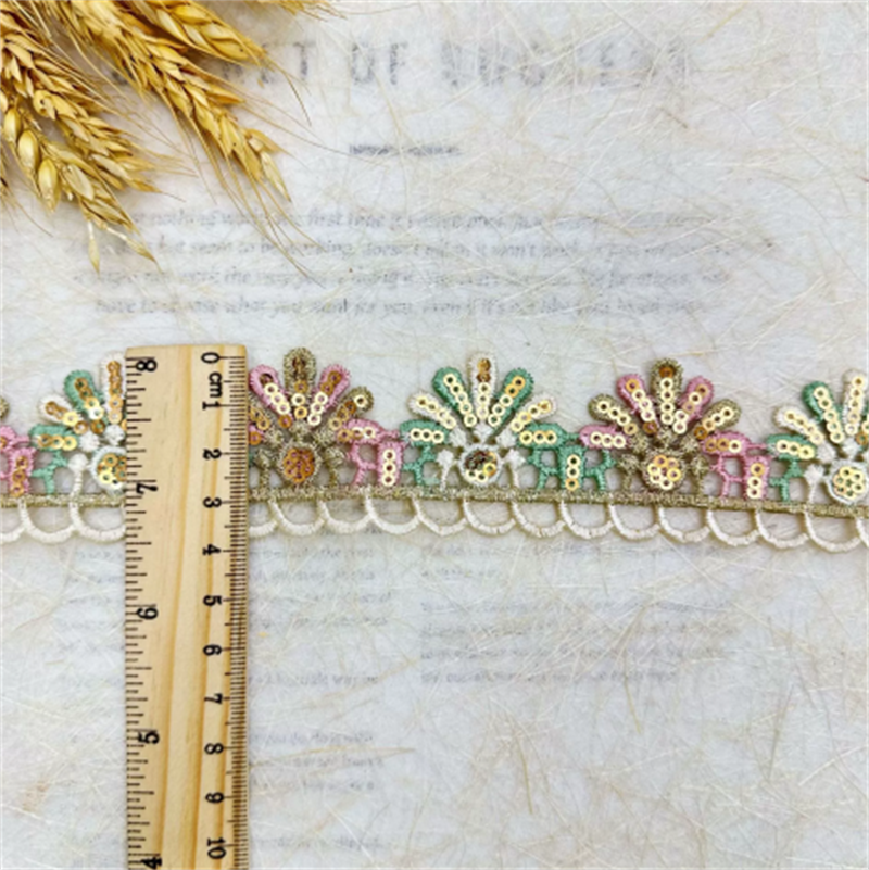 多色刺绣花边 金线亮片四色花边 珠片民族风花边辅料