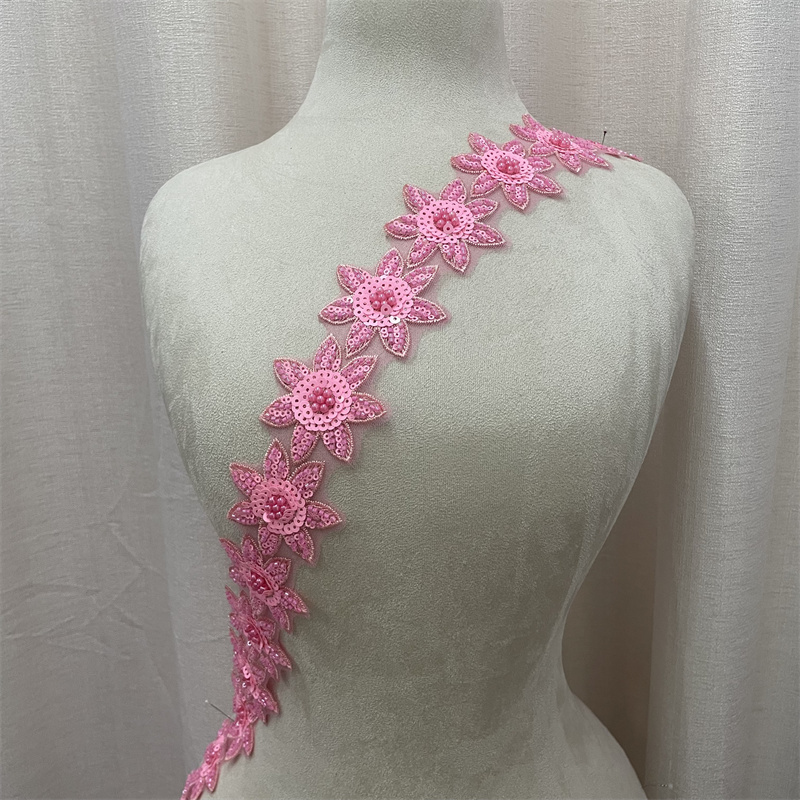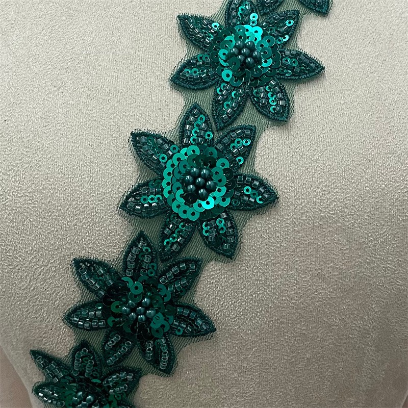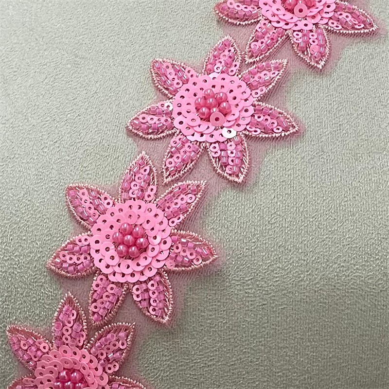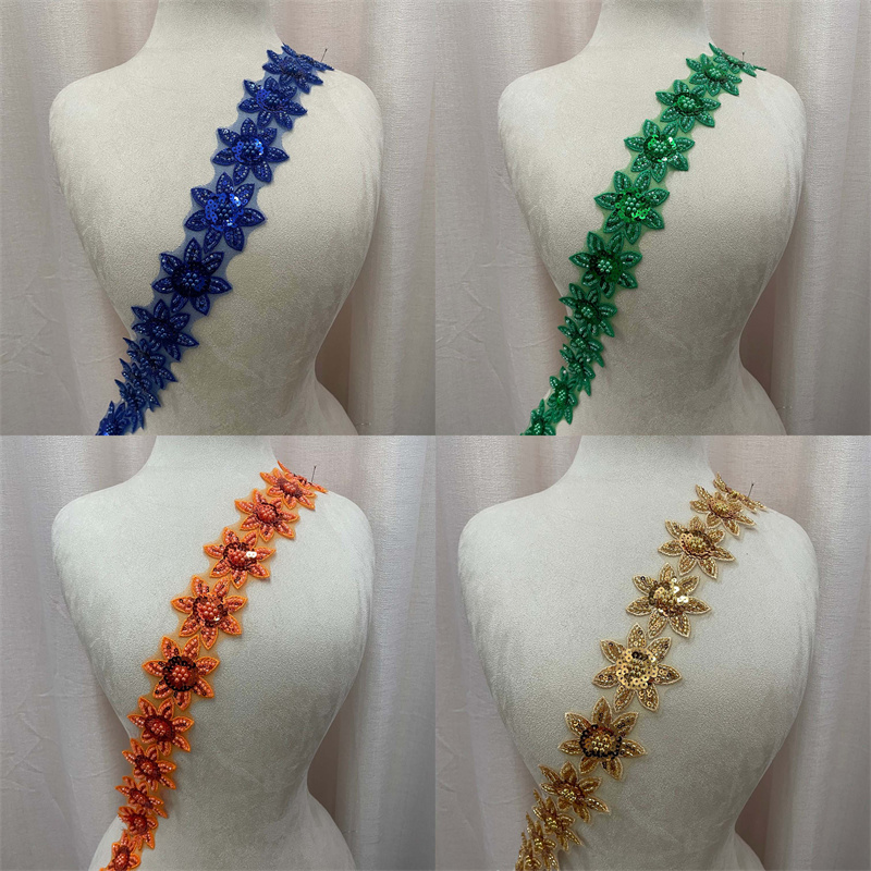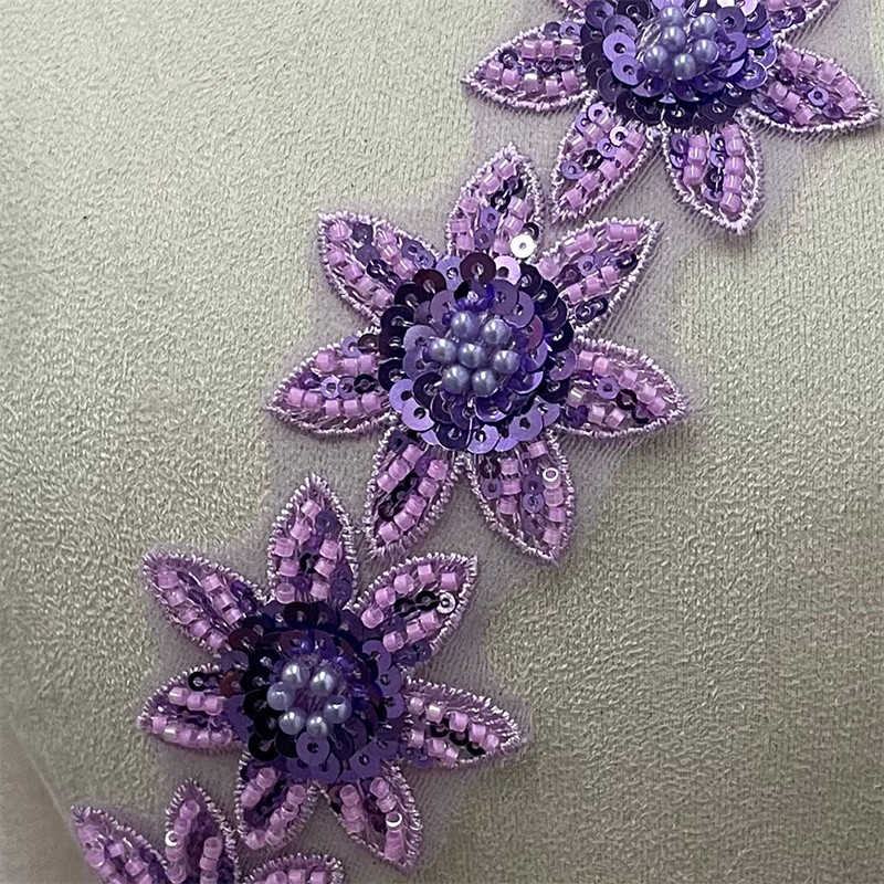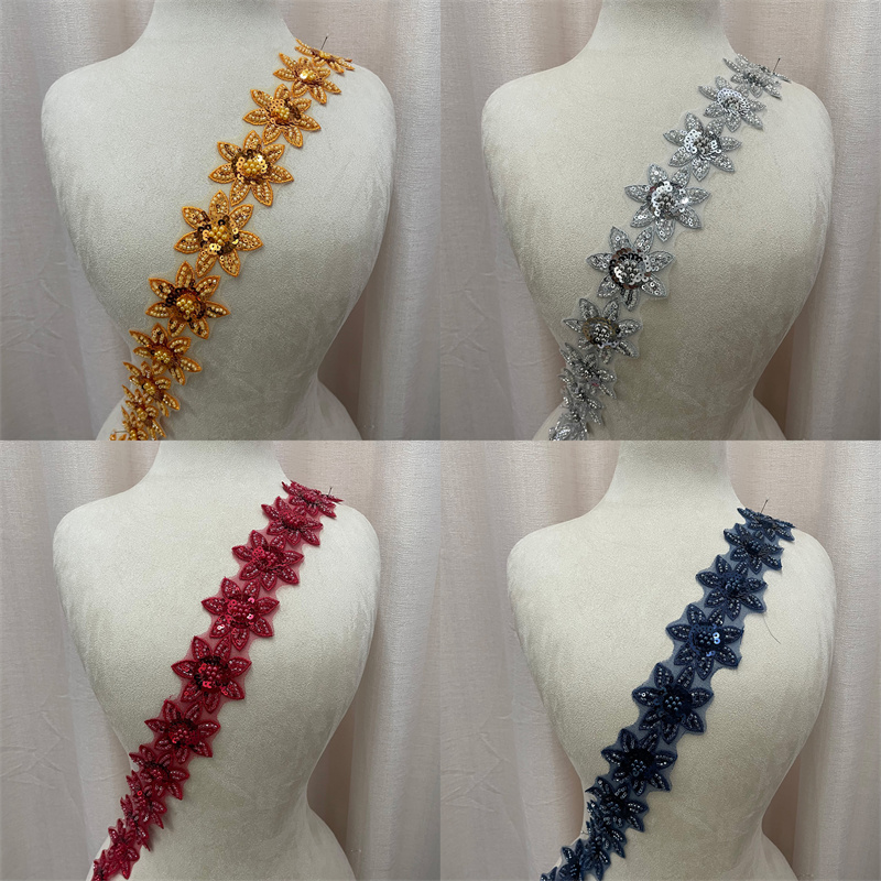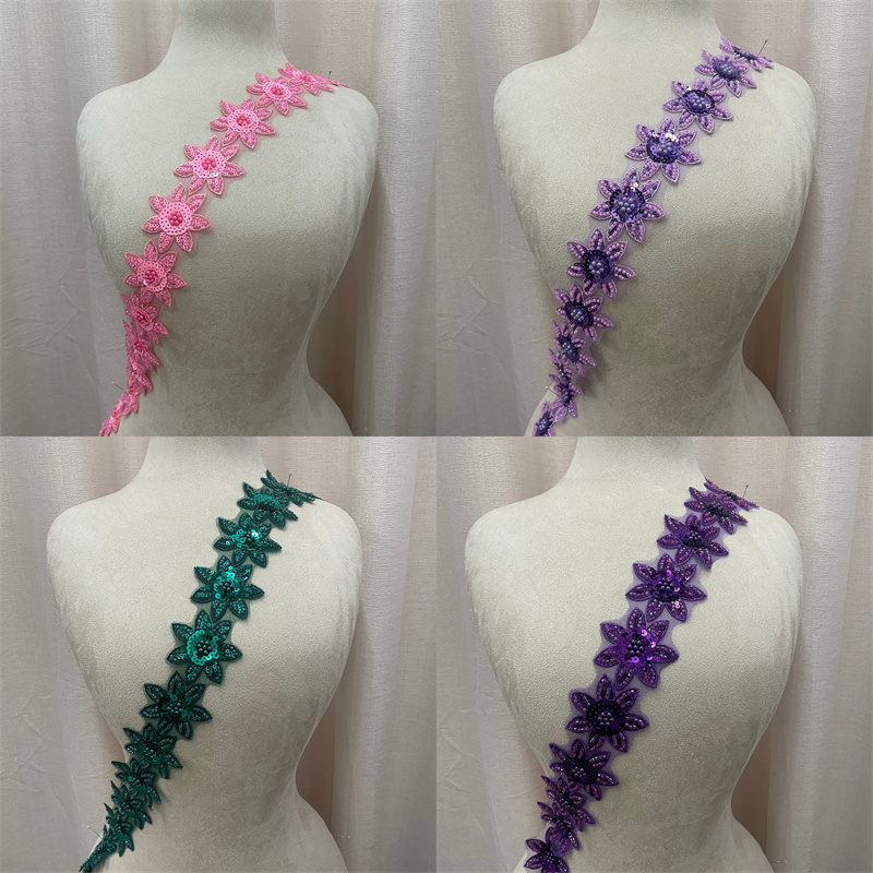 多色3D花卉刺绣蕾丝装饰 手工钻石珠和亮片刺绣鞋包