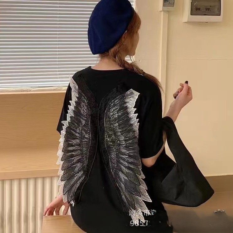 大号天使翅膀玻璃纱蝴蝶后背花 DIY花边辅 网底刺绣蝴蝶对花批发