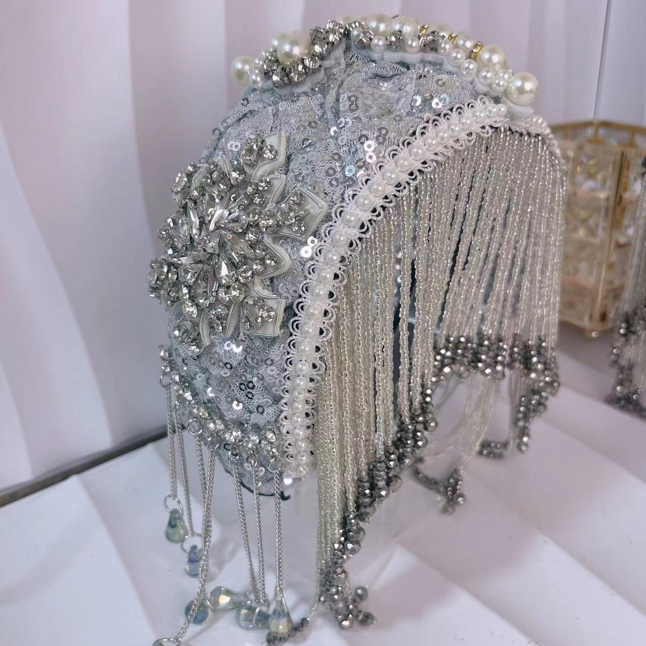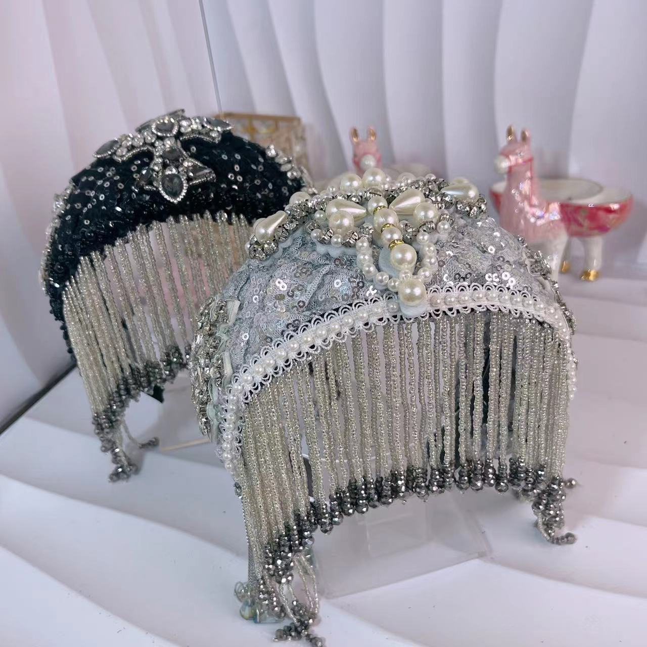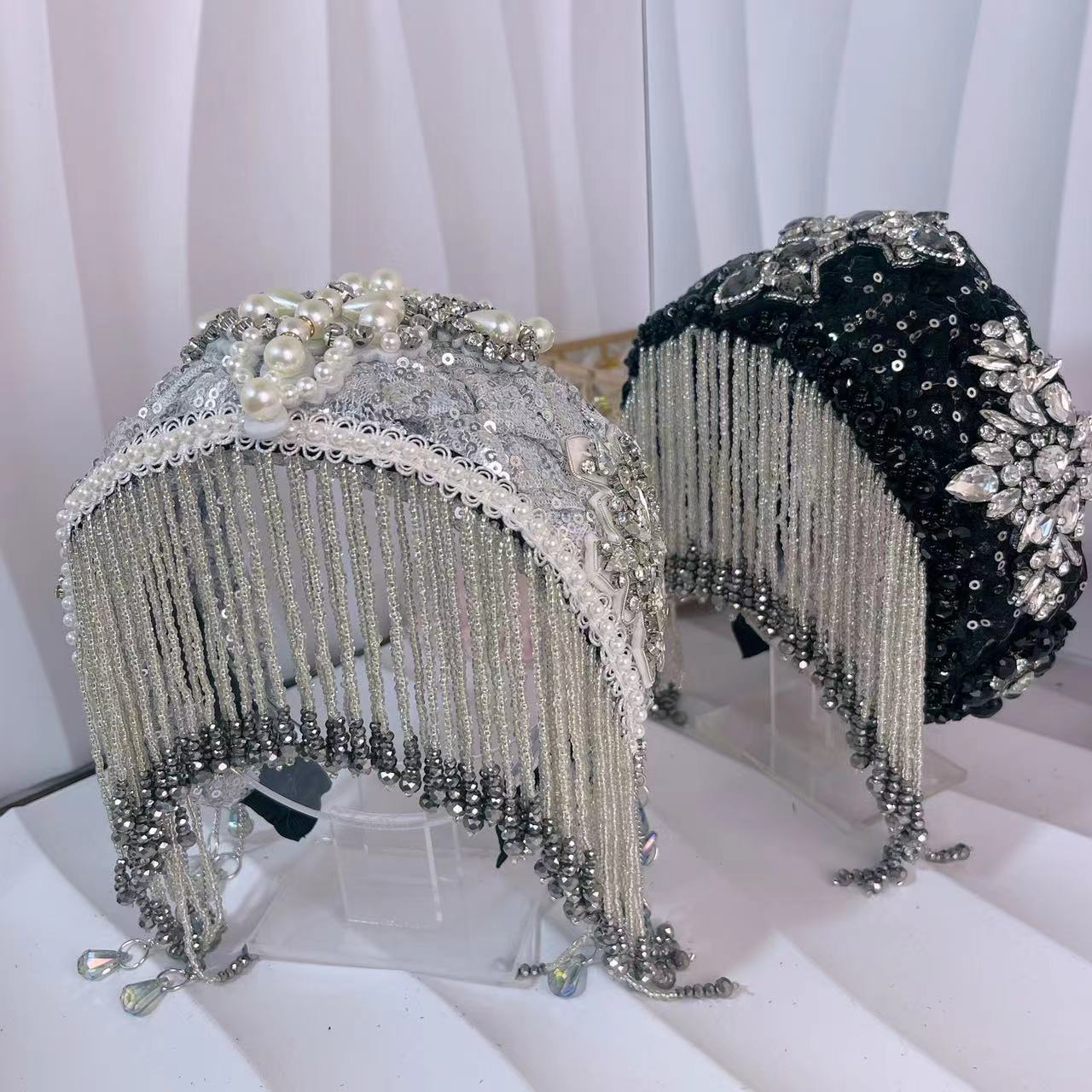 • 夸张珠珠亮片水晶十字架长流苏黑色民族风流苏发箍