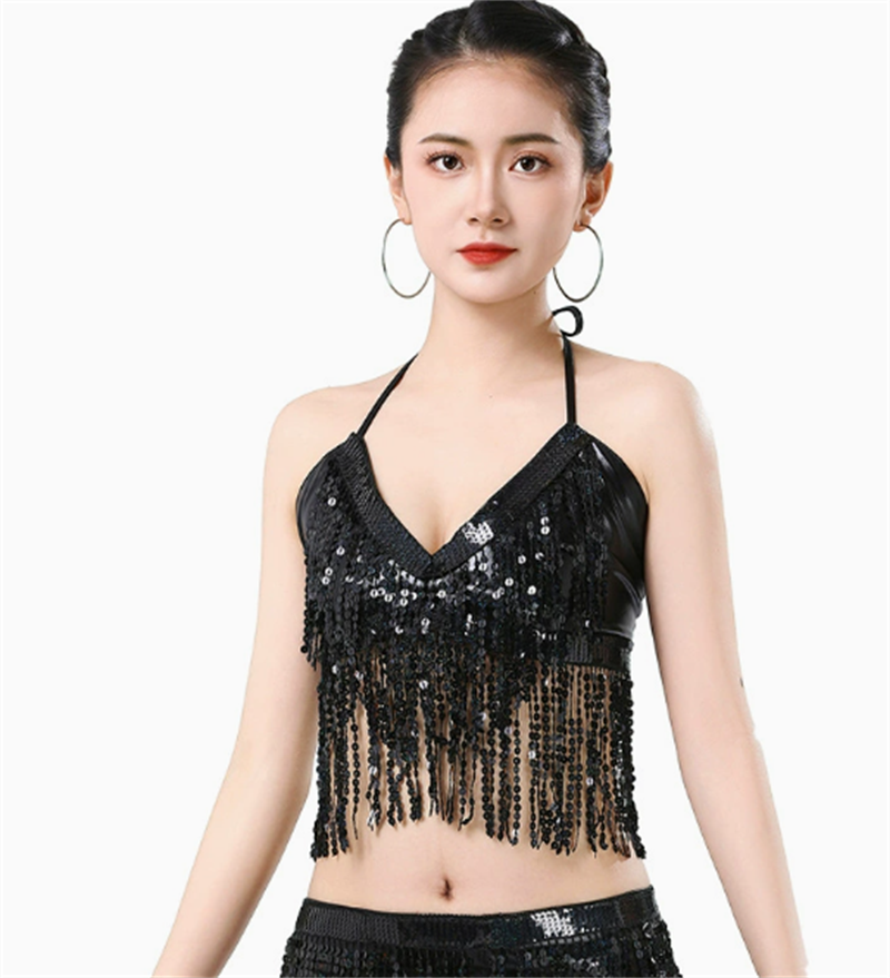 • 女式肚皮舞服装亮片文胸流苏上衣DS夜店舞台亮片节日表演演出服