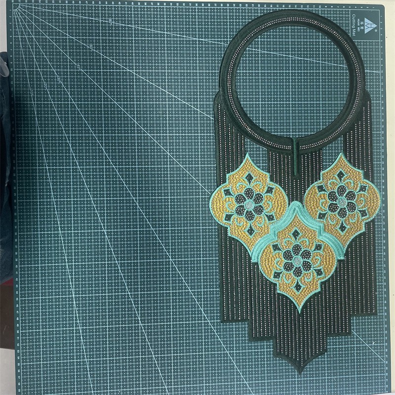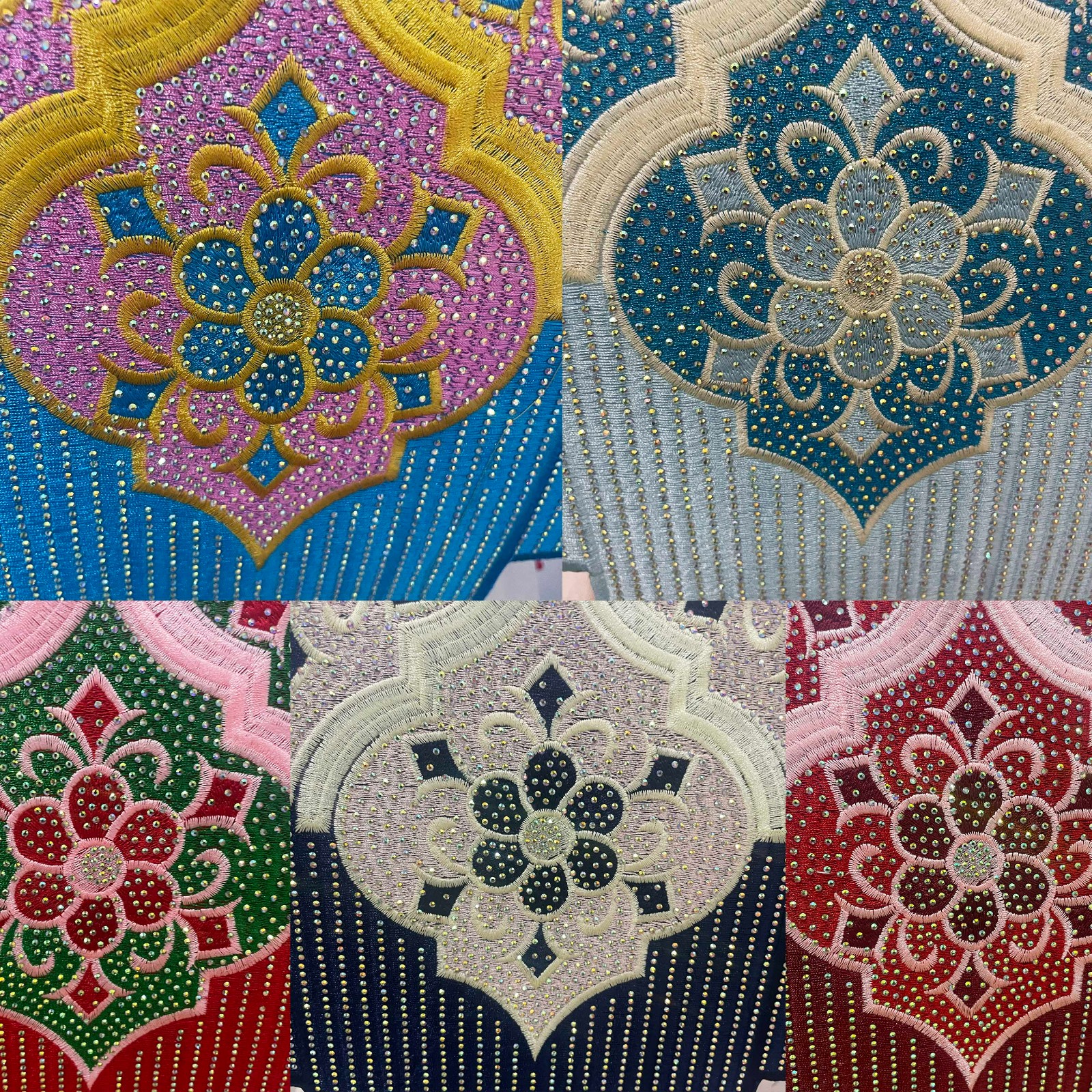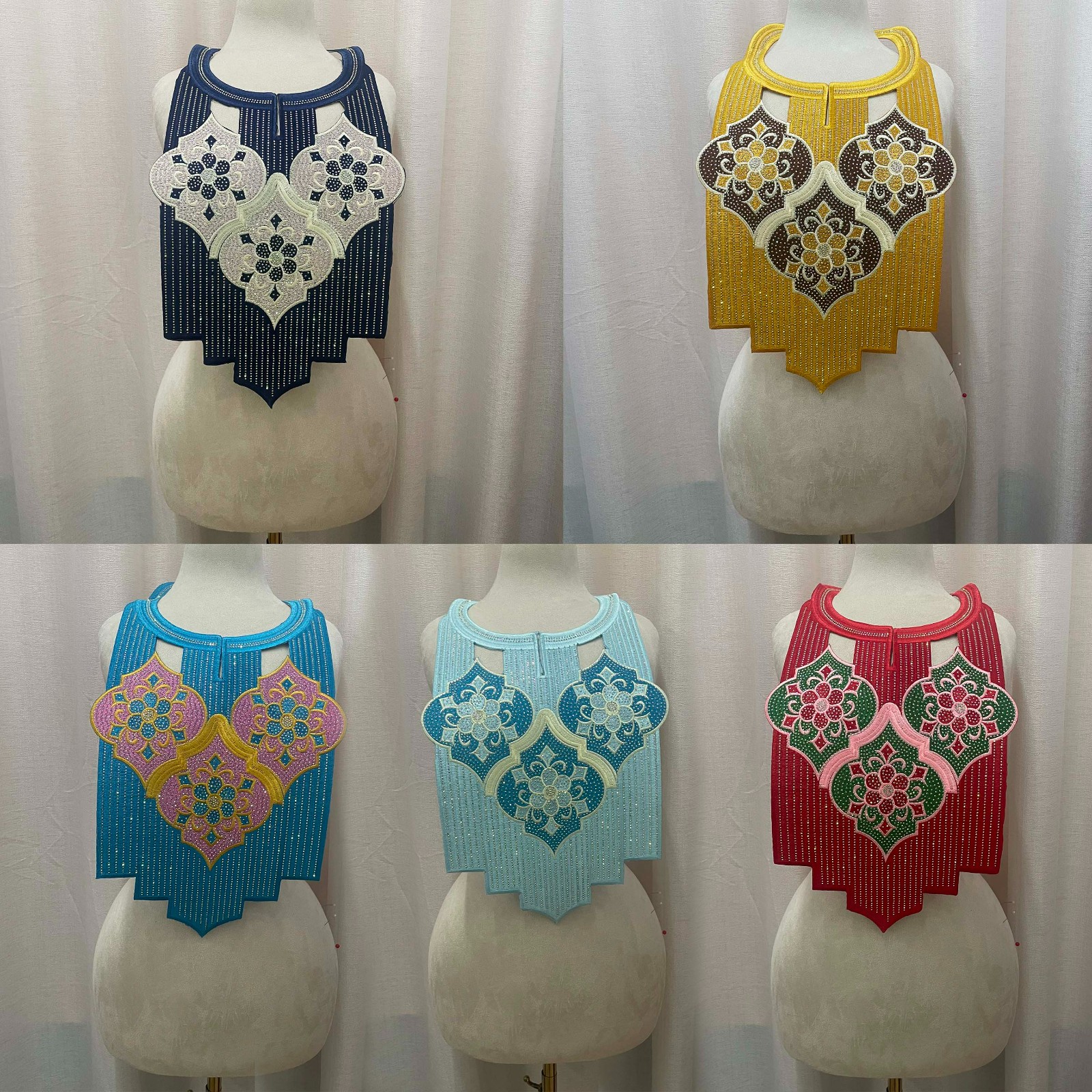 女性彩色刺绣领口非洲DIY缝纫配件水钻婚礼服装帆布补丁尼日利亚