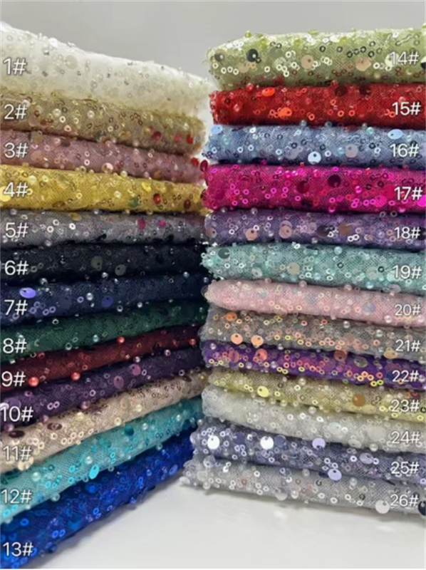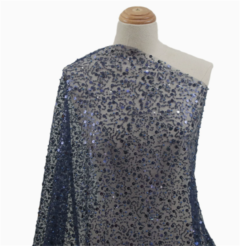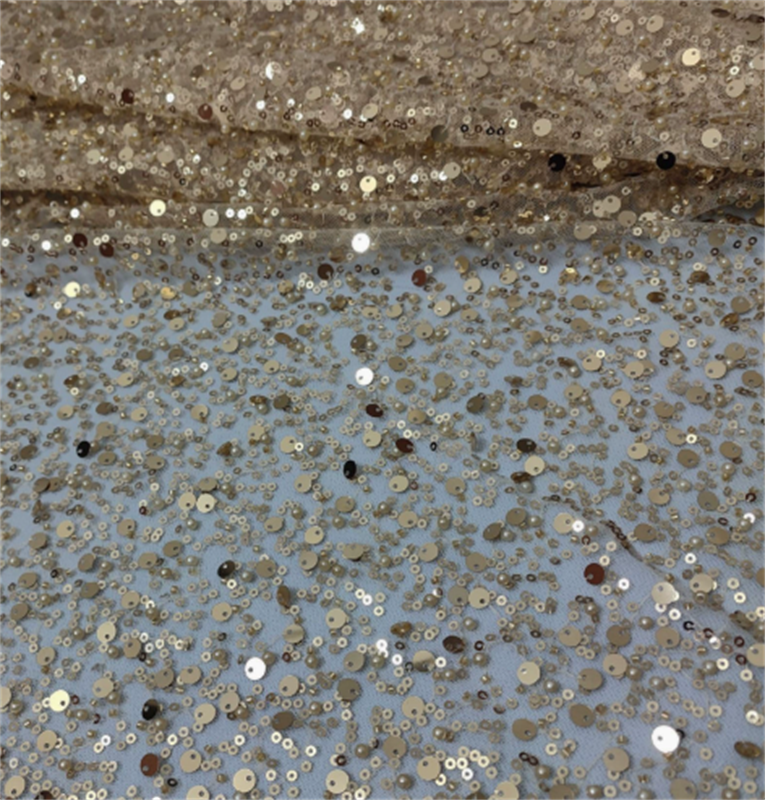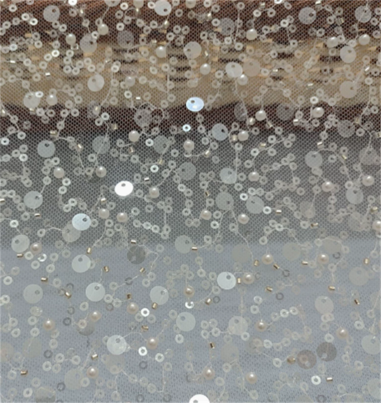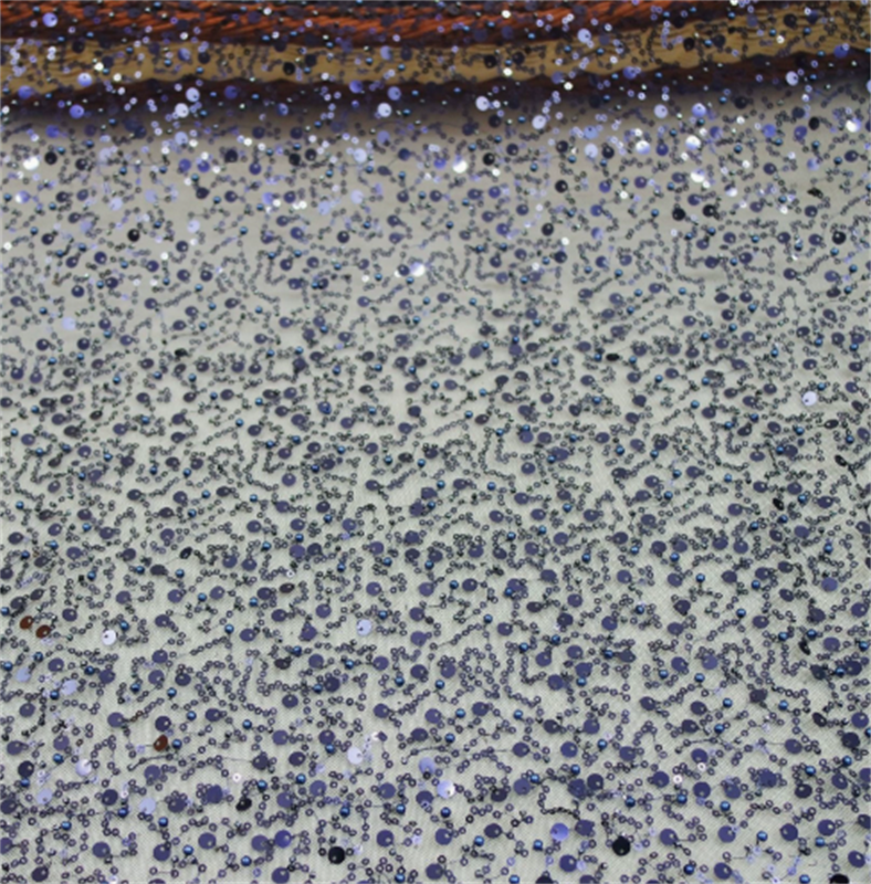 密版泡珠珠管绣礼服 珠子珠片绣亮片面料欧美跨境绣品婚纱面料