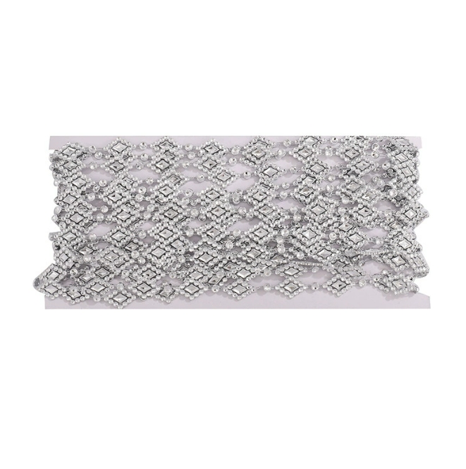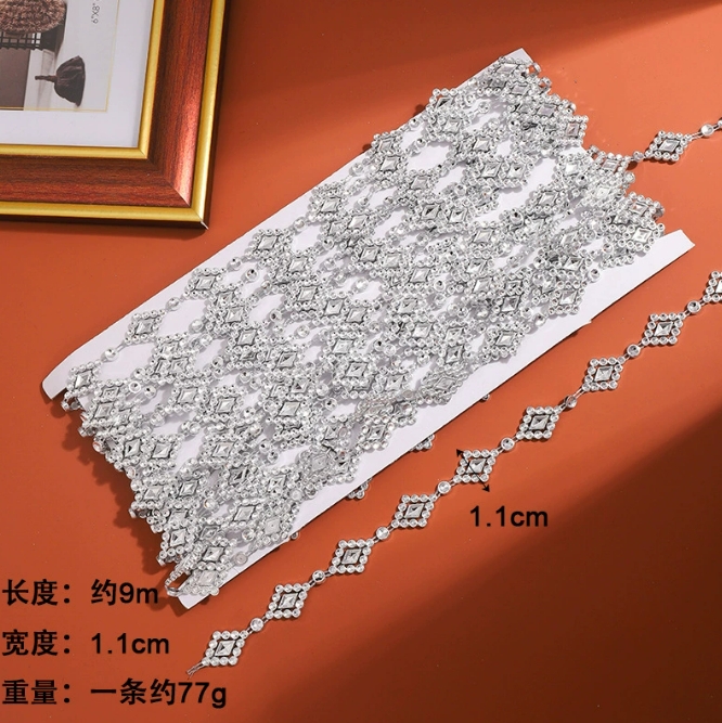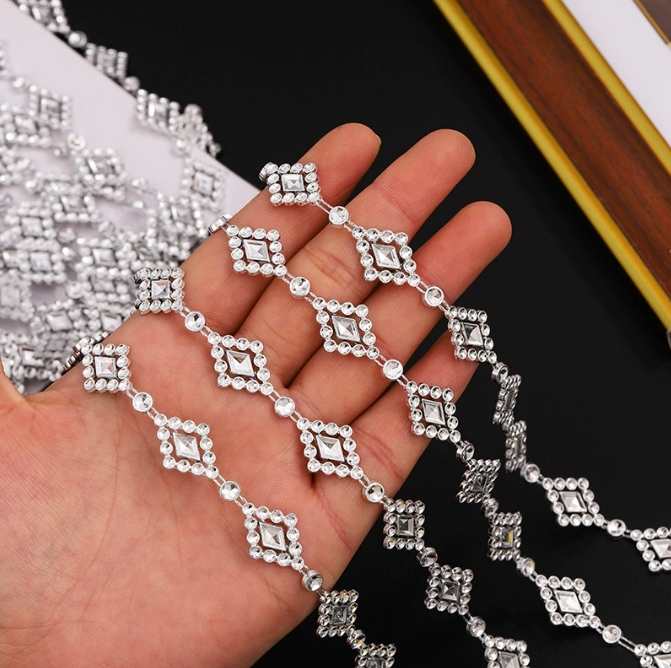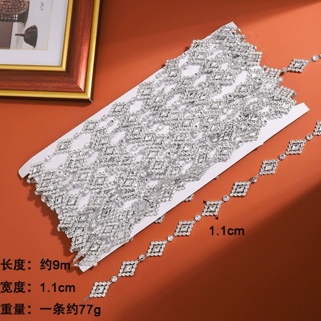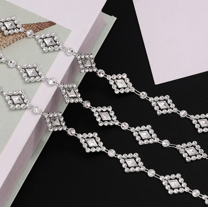 少数民族舞台服装辅料菱形凹钻珠链手工DIY银色塑料装饰9米长