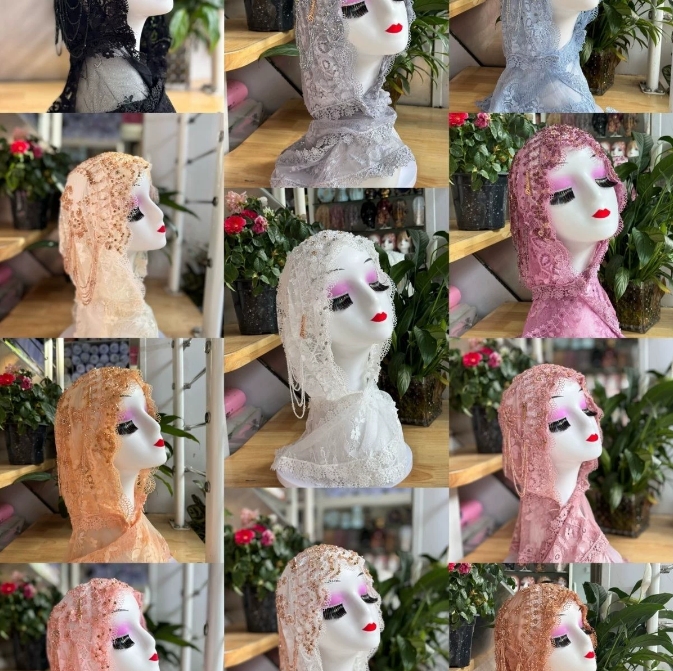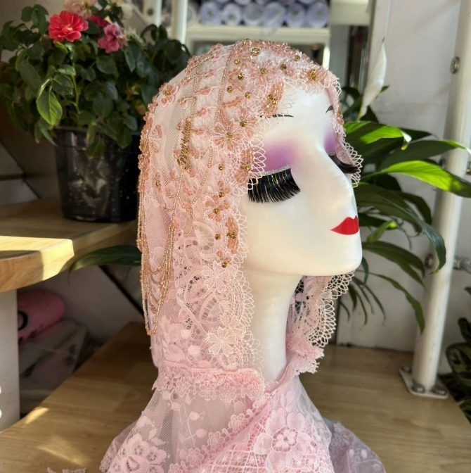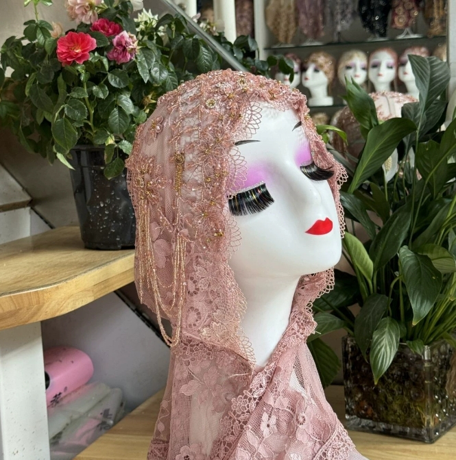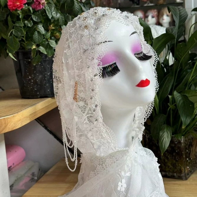 • 帽子头纱套头少数民族款包头新款高贵蕾丝公主风洋气纱巾披肩流苏