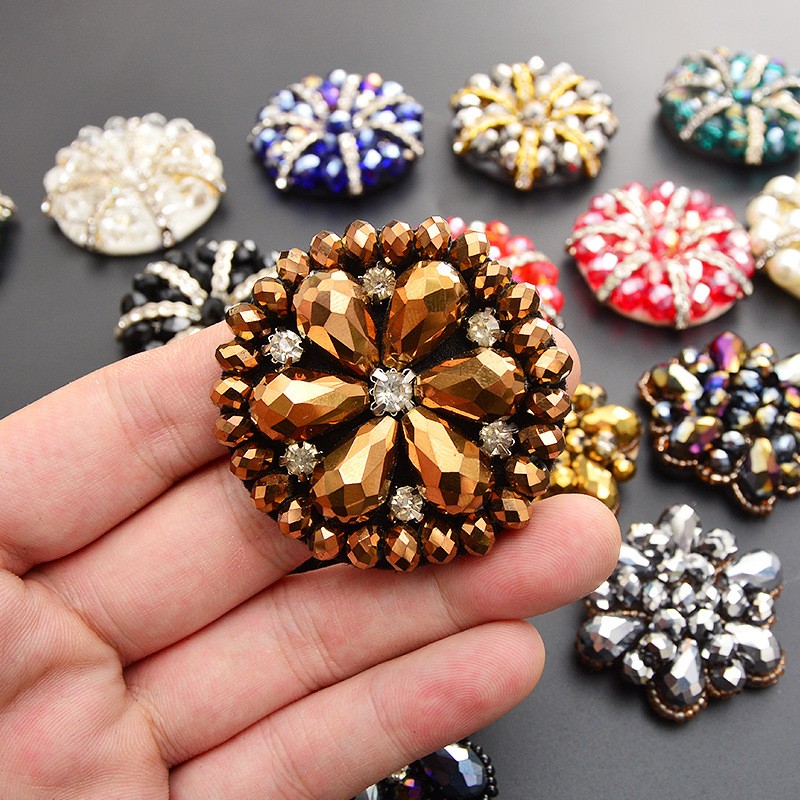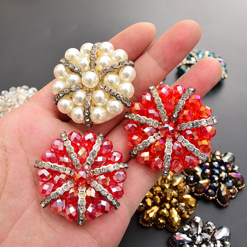 彩色圆形水晶手工钉珠布贴水钻珍珠服装贴花diy补丁时尚辅料手缝