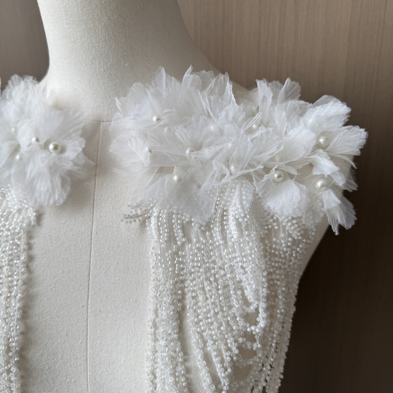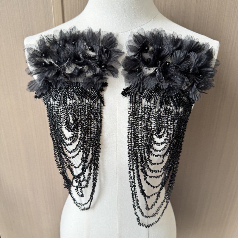 • 性感花卉手工珠串水钻蕾丝流苏肩部服饰装饰缝纫配件