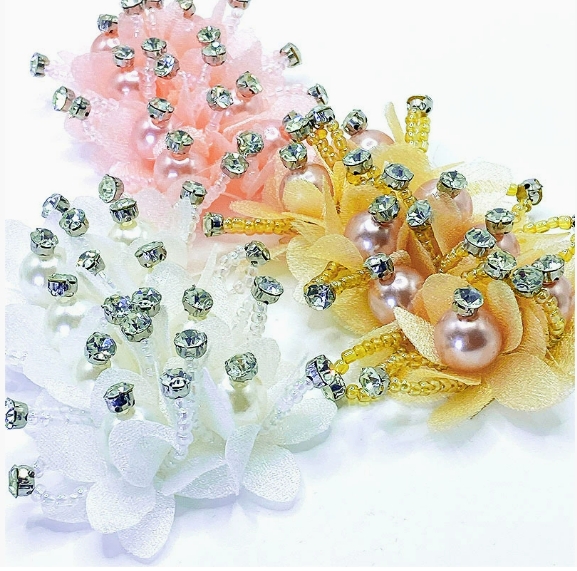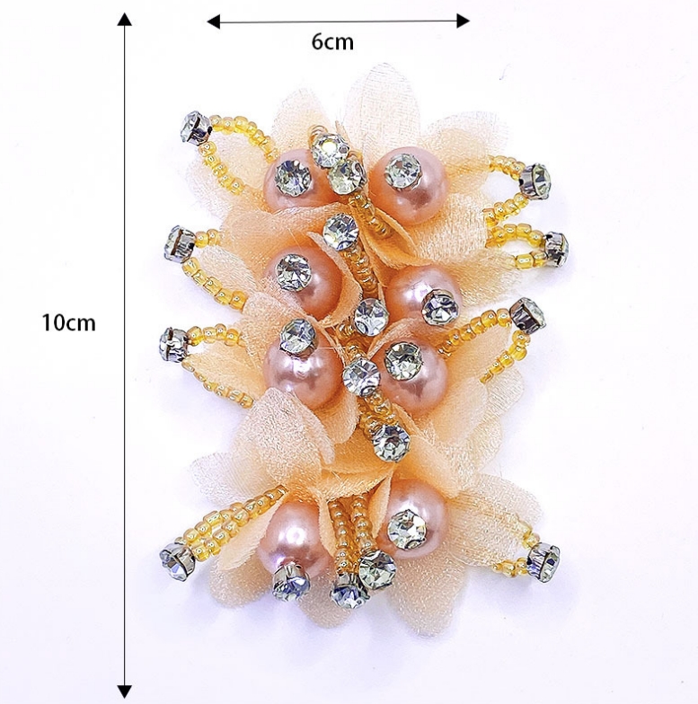 手工网纱鞋花 头饰立体珍珠水钻配饰表演服装鞋服配件