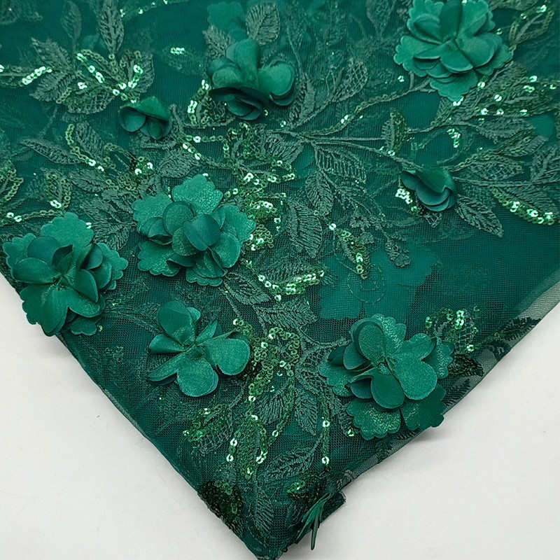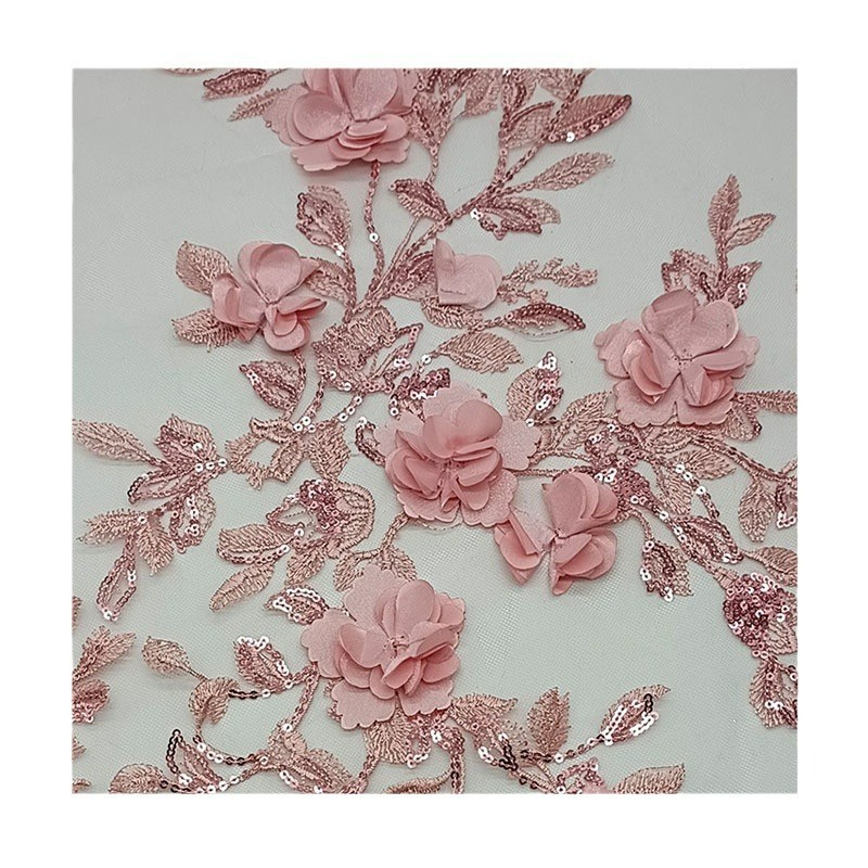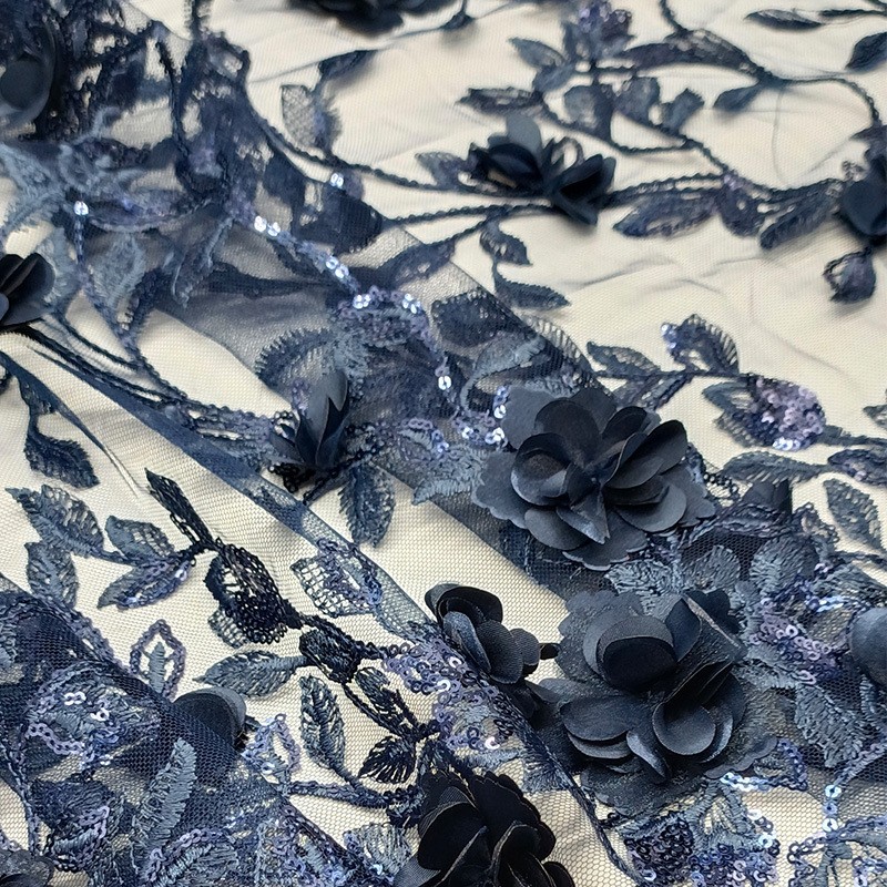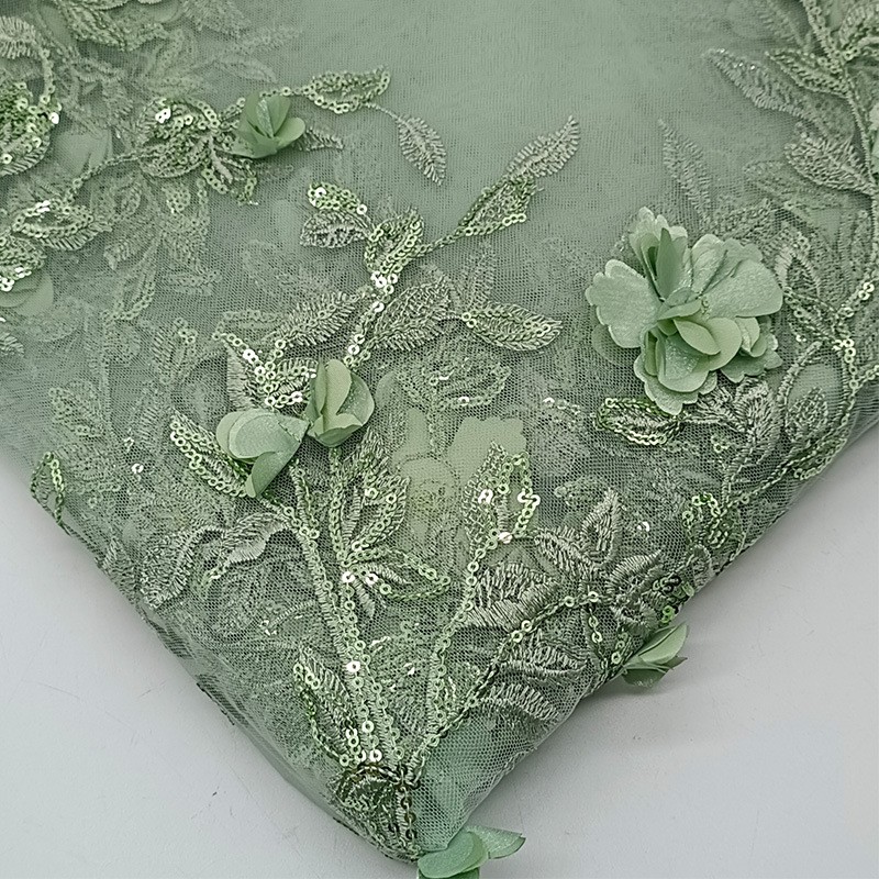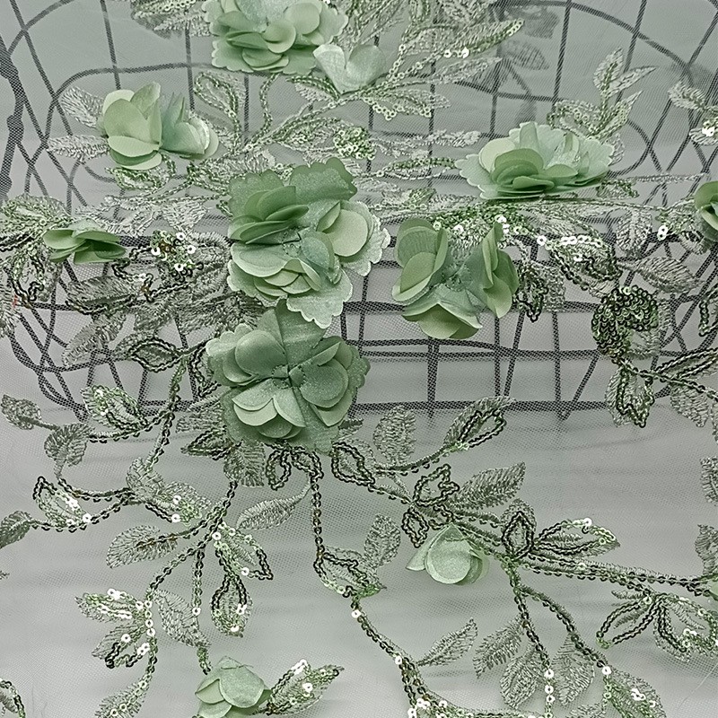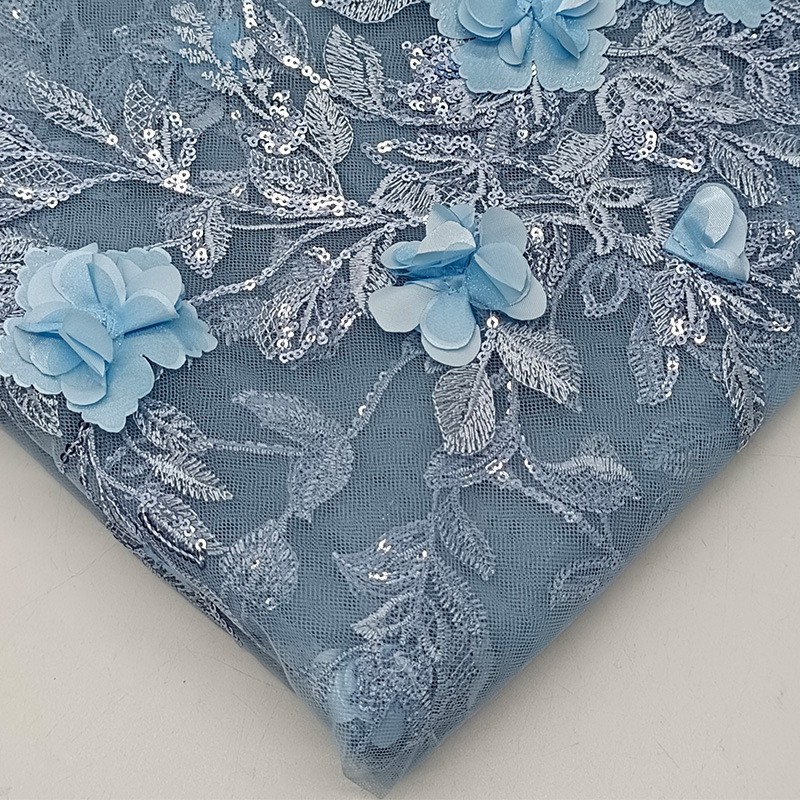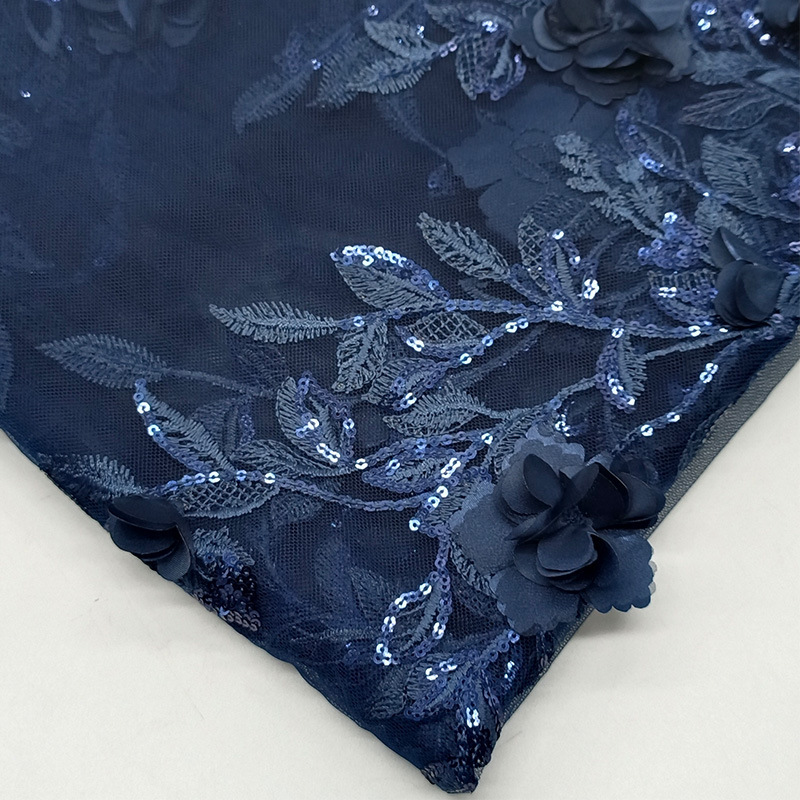 手工订花网纱亮片刺绣面料 现货 古风连衣裙舞台服珠片绣花布料