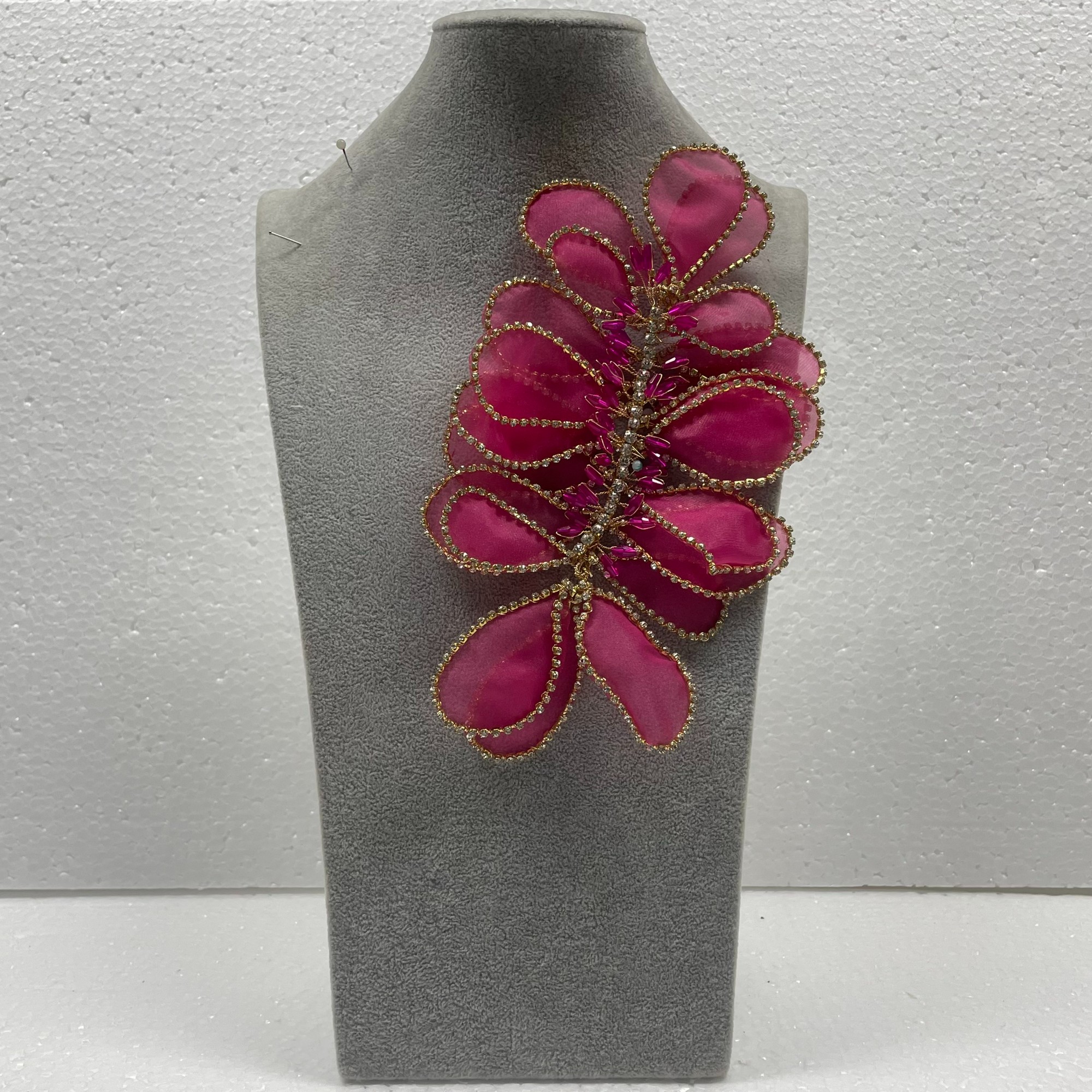 • 手工金属丝花朵水晶紧身晚礼服