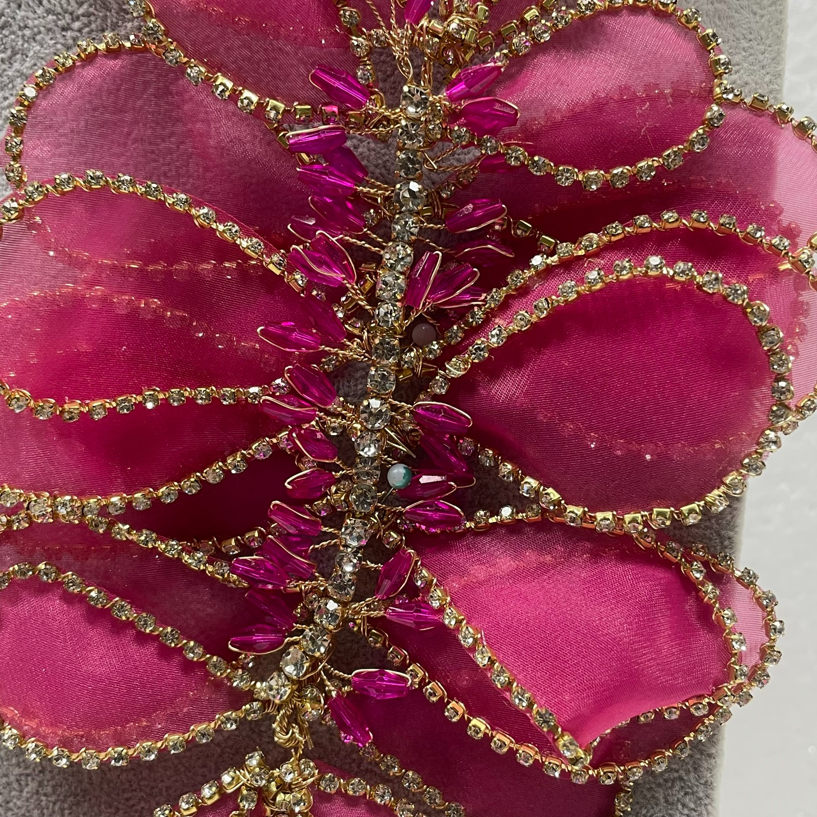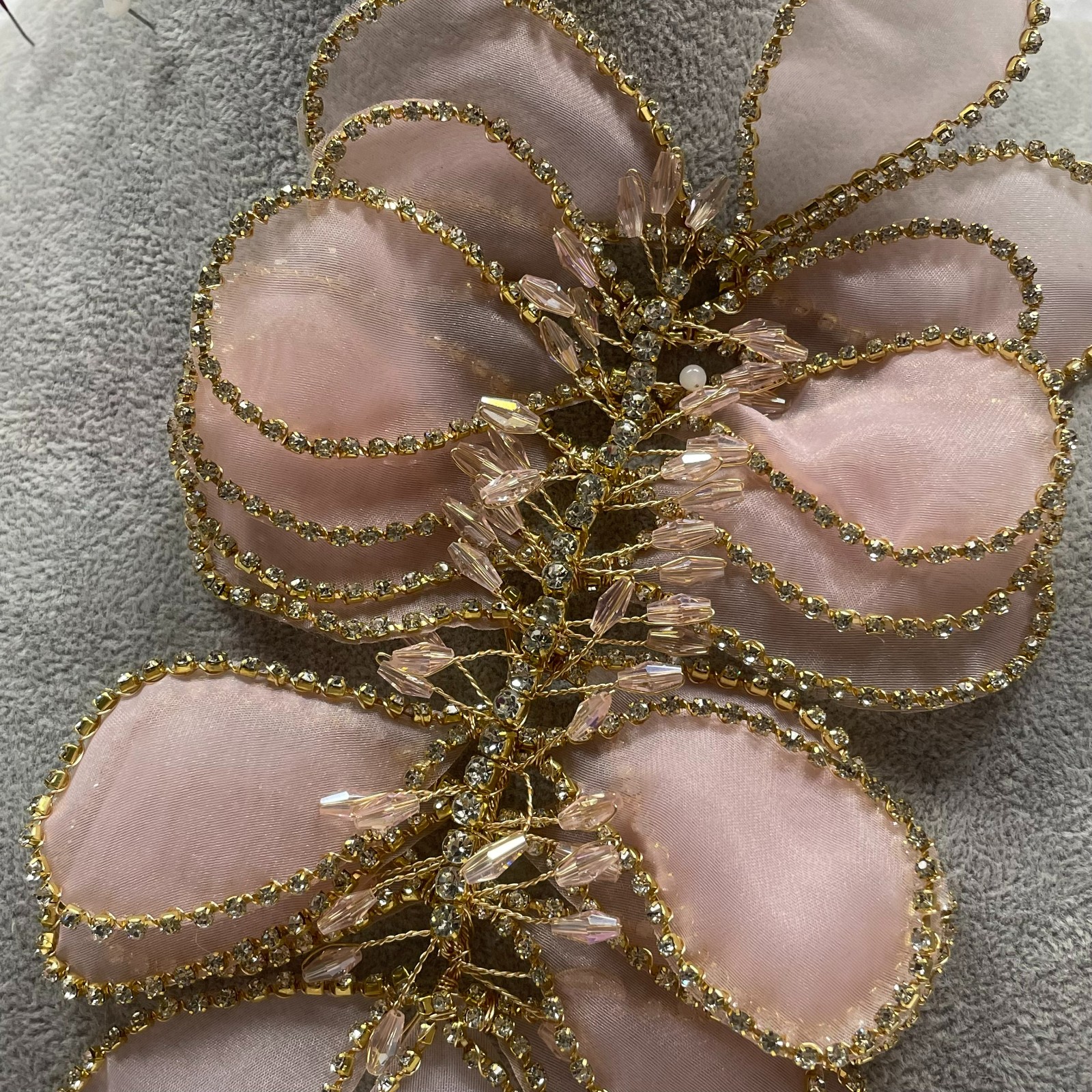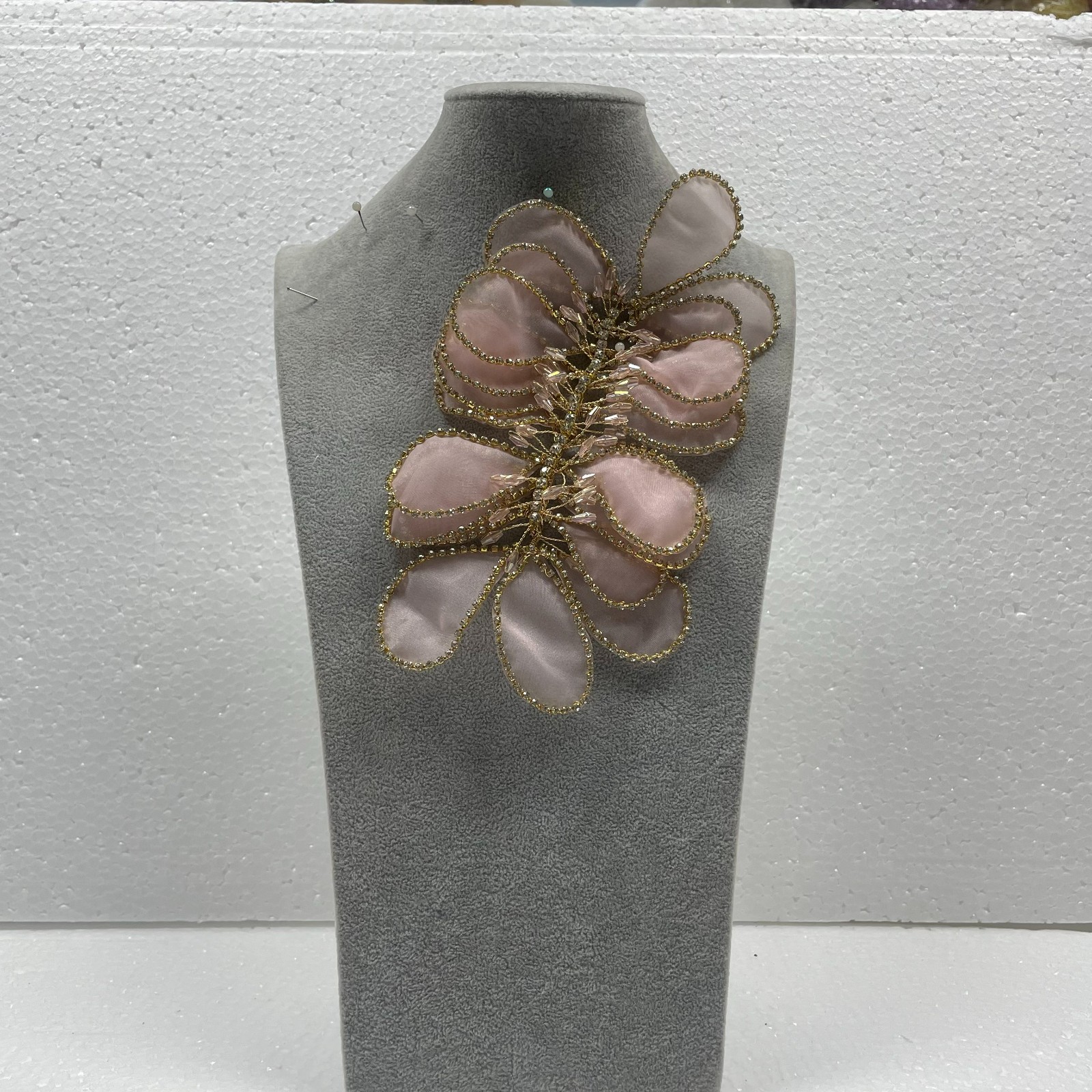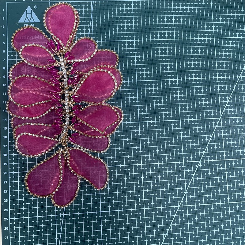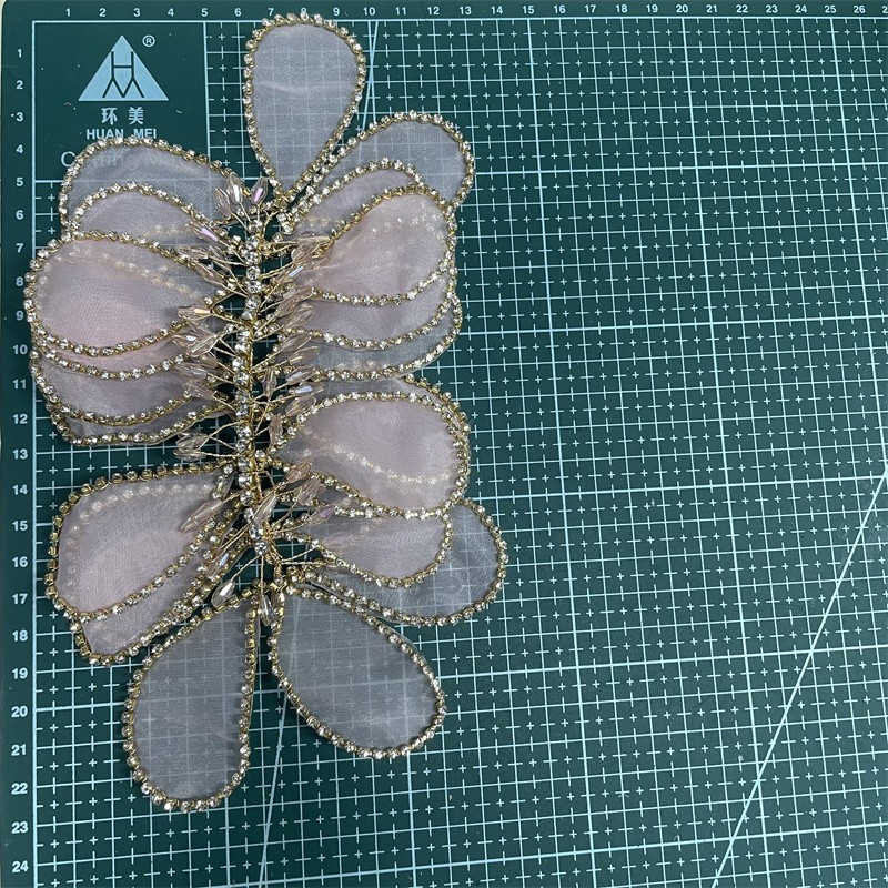 手工金属丝花朵水晶紧身晚礼服