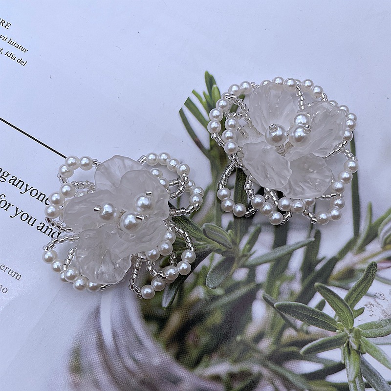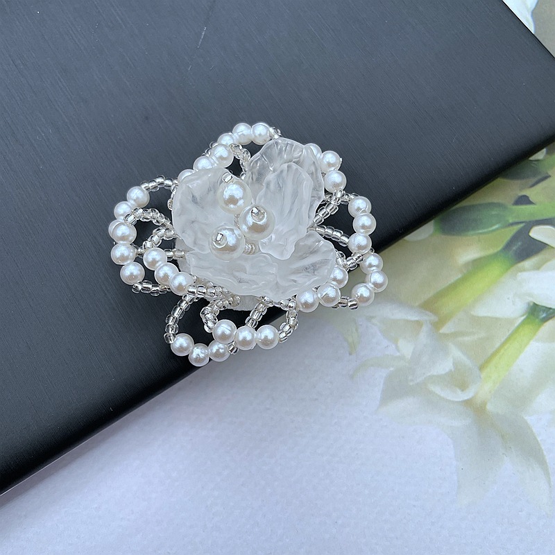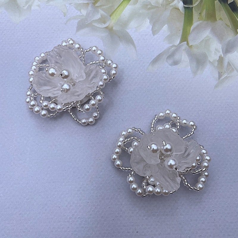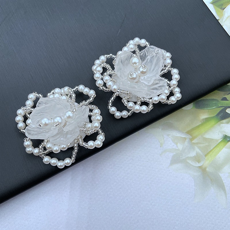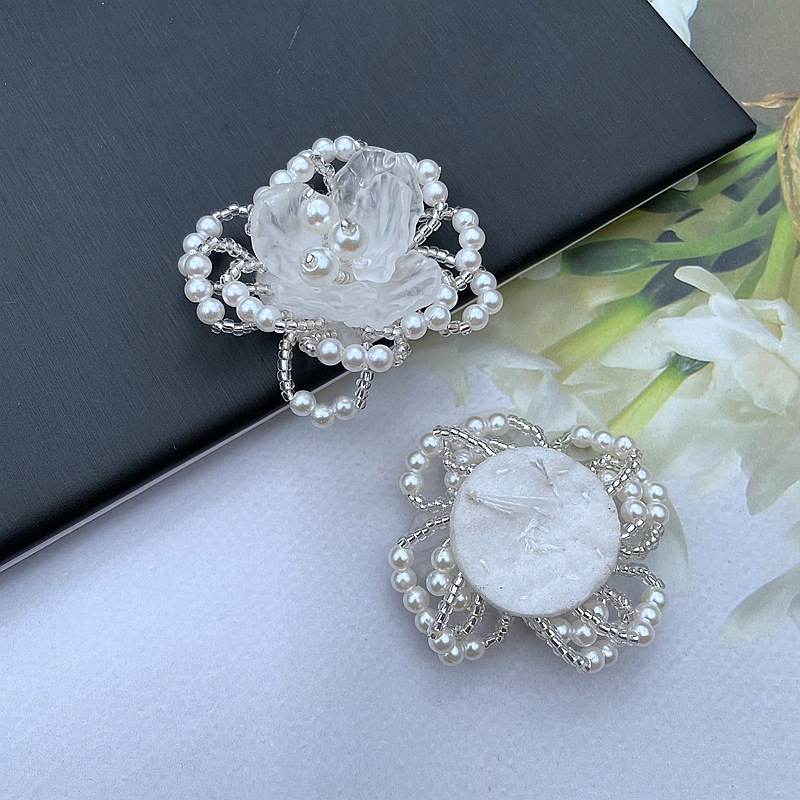 • 手工钉珠珍珠立体花布贴 仿珍珠花朵胸花服装