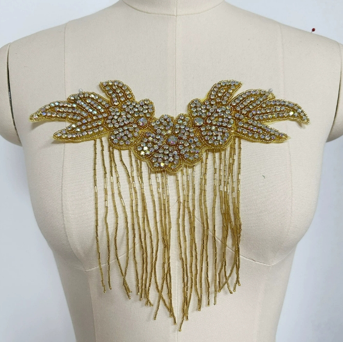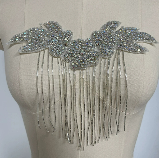 手缝水钻带流苏背胶花片补丁服装礼服舞蹈走秀辅料DIY