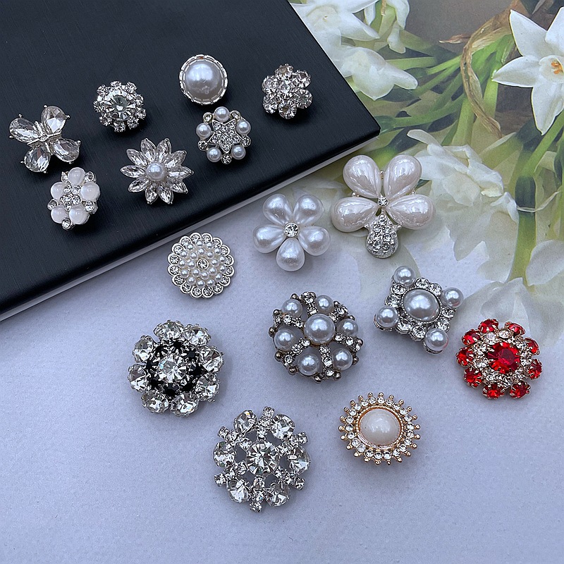 手缝高脚镶钻纽扣 水晶水钻珍珠扣子