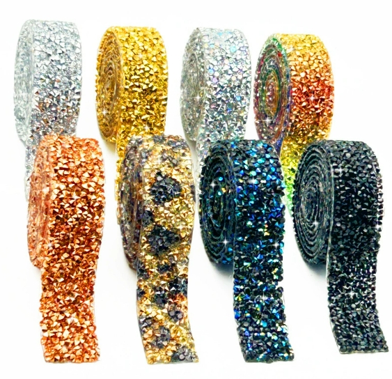 批发彩色水钻条帽子装饰钻带热熔胶自粘钻条饰品配件彩色水钻
