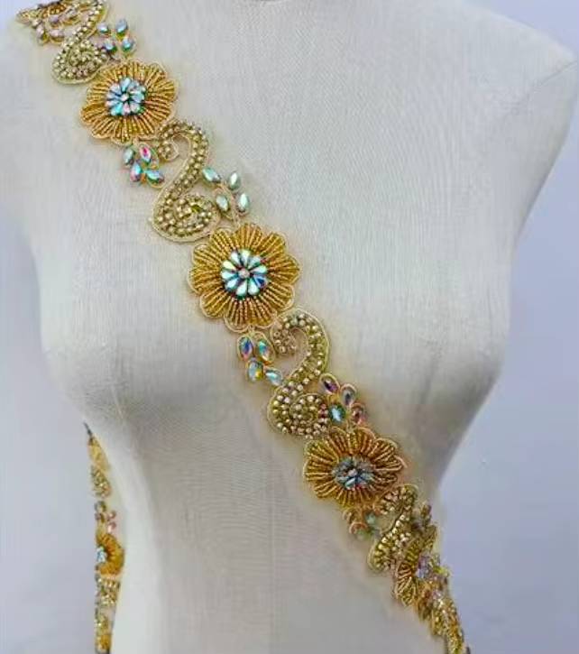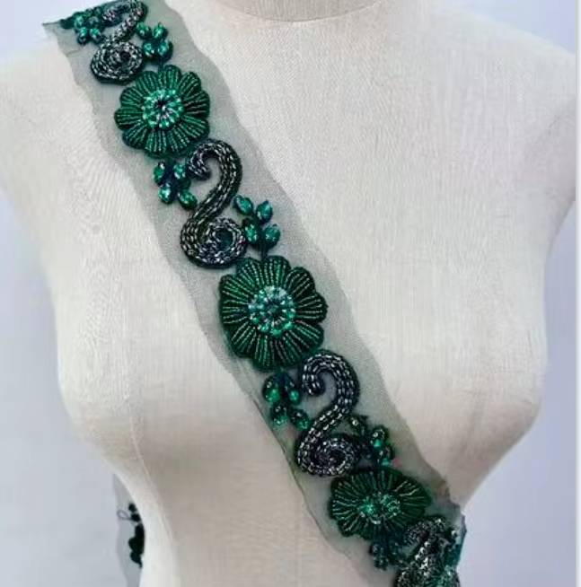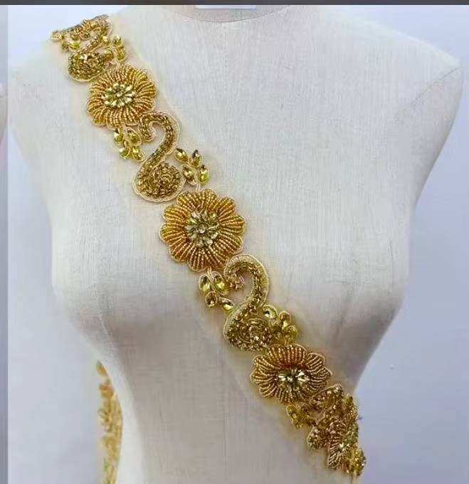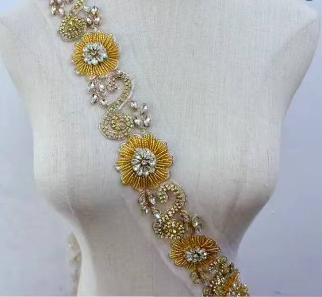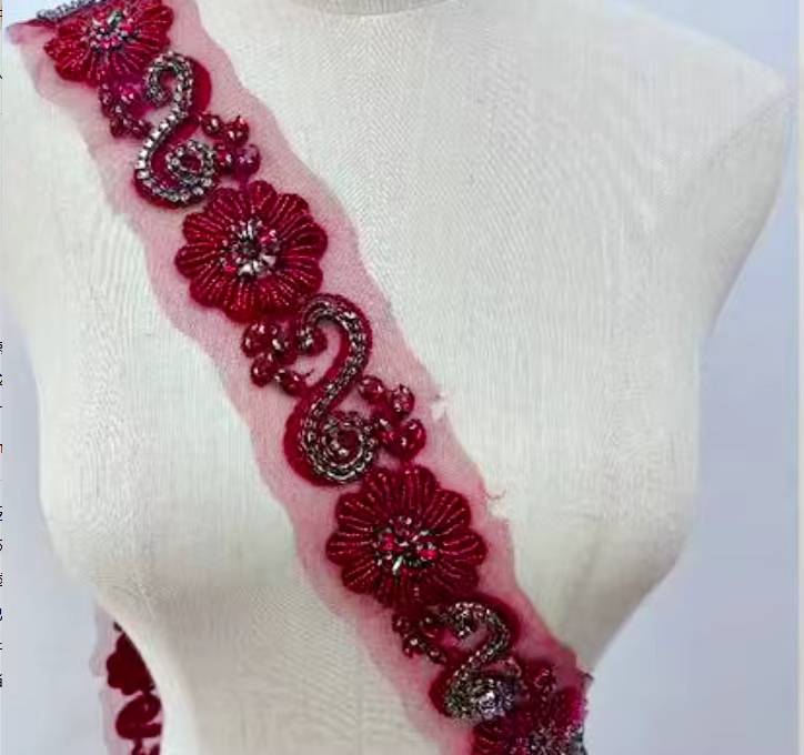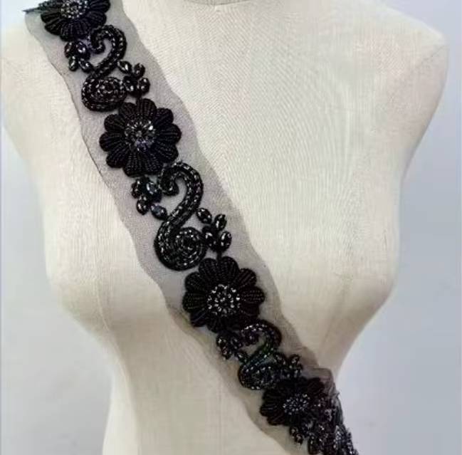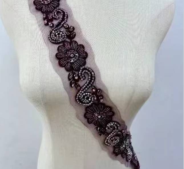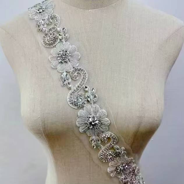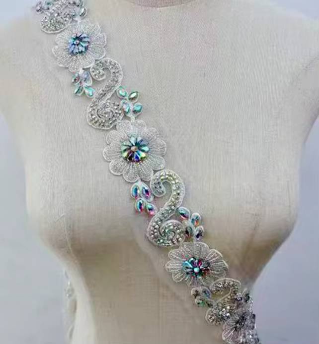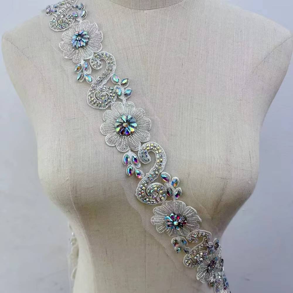 批发手工水晶亮片珠饰蕾丝贴花,用于连衣裙