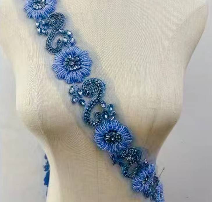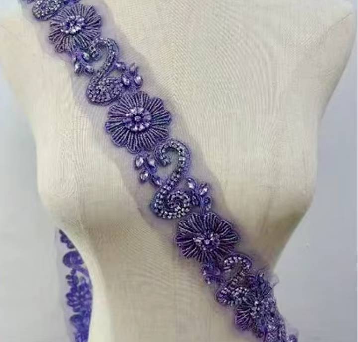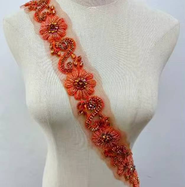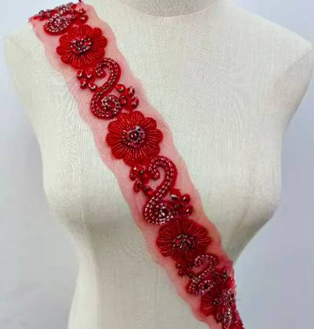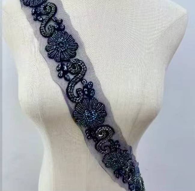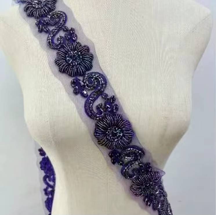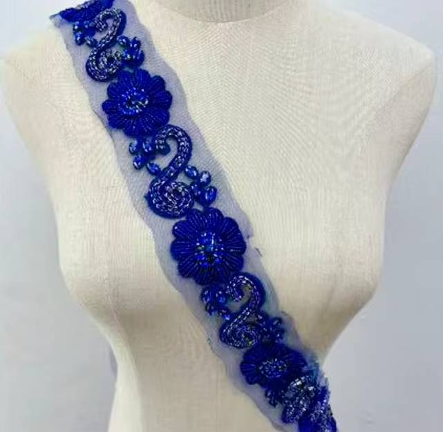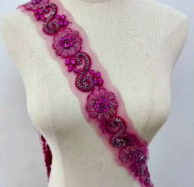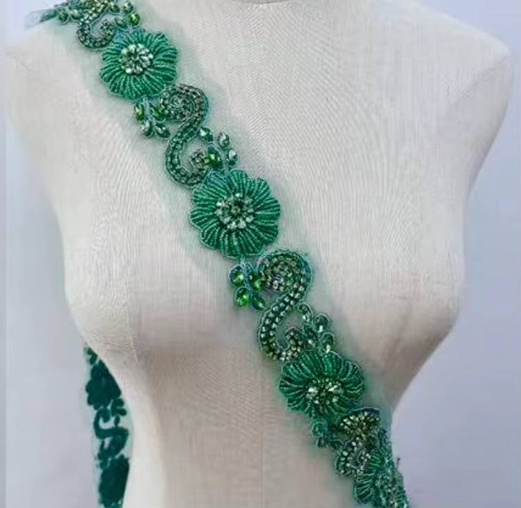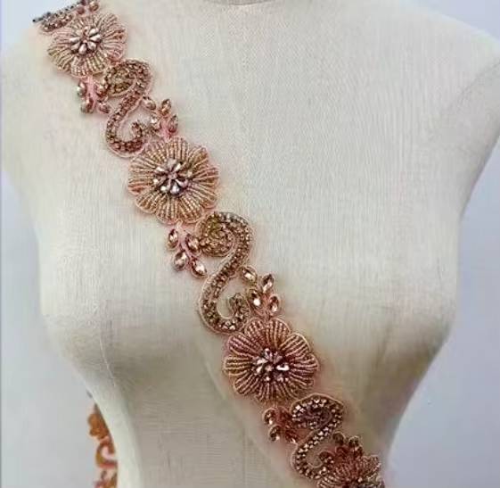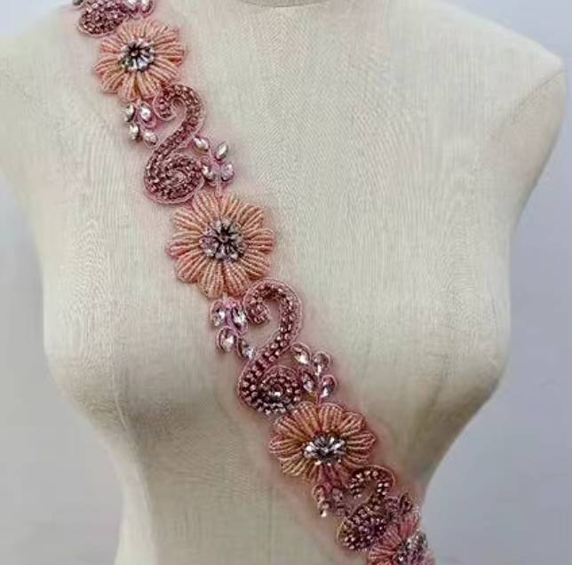 批发手工水晶亮片珠饰蕾丝贴花,用于连衣裙