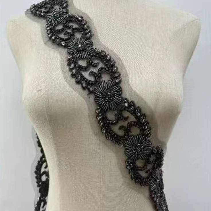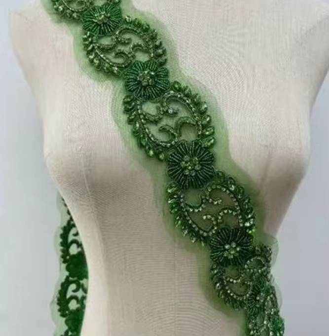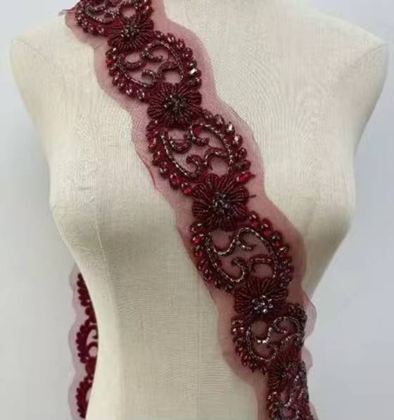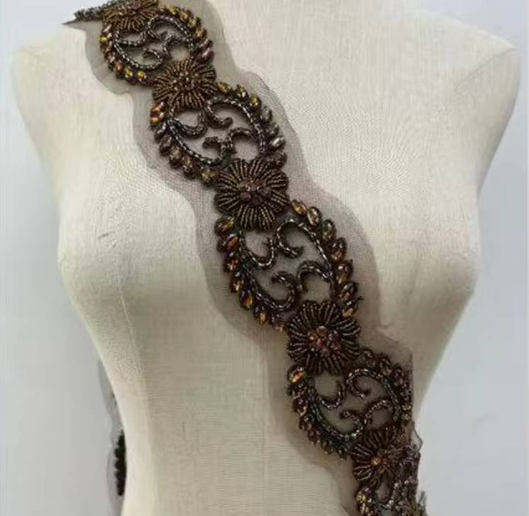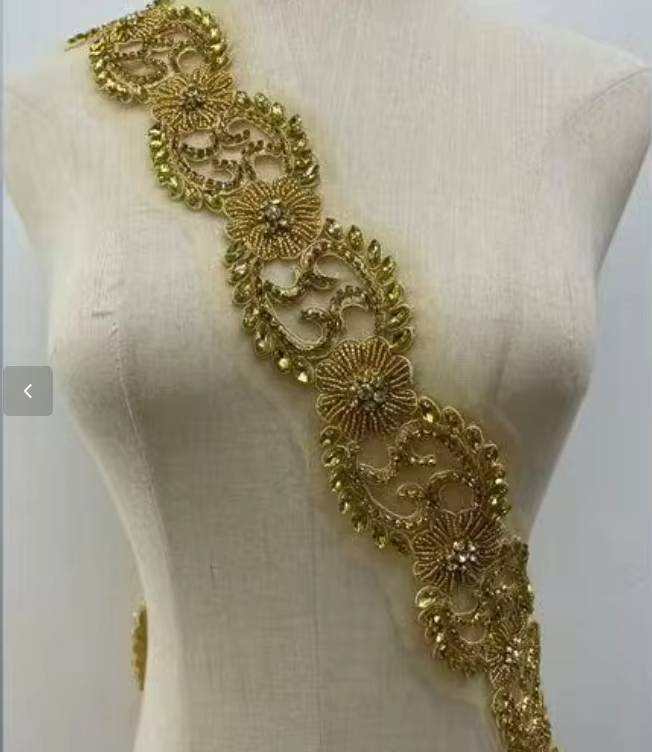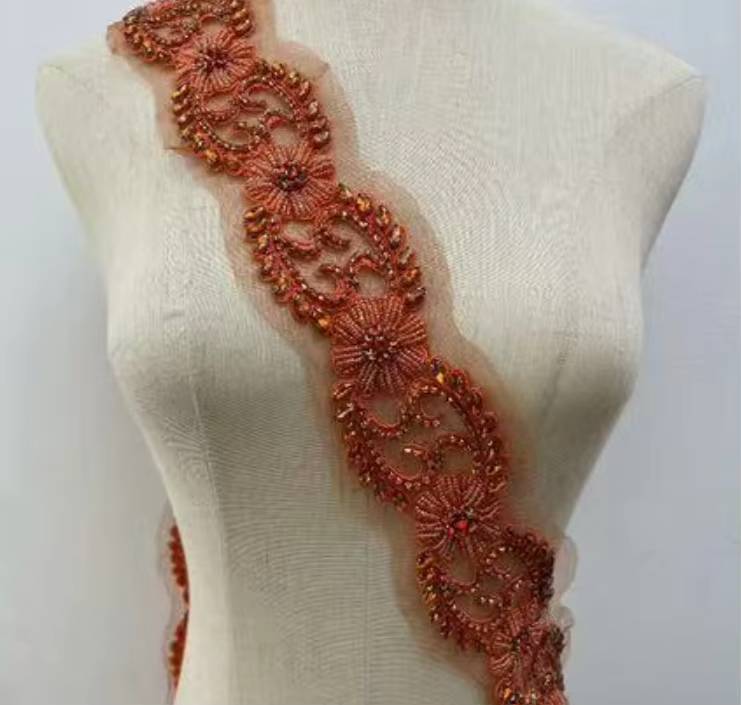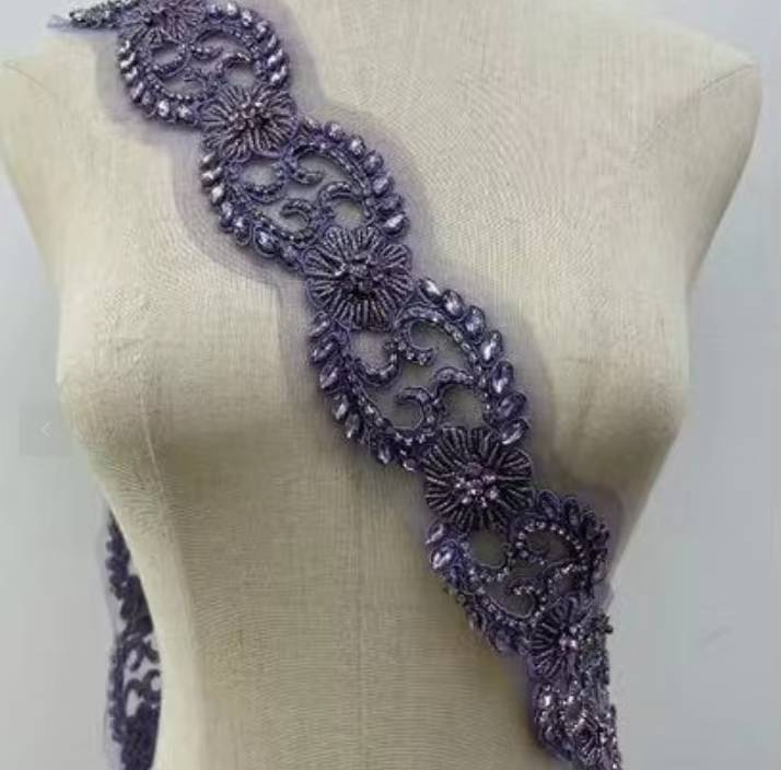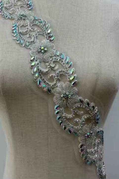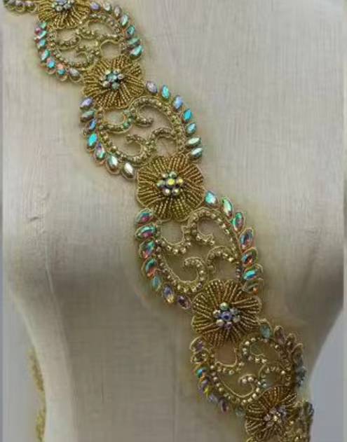 • 批发手工水晶珠绣花边镶边环保传统风格亮片珠饰新娘用装饰