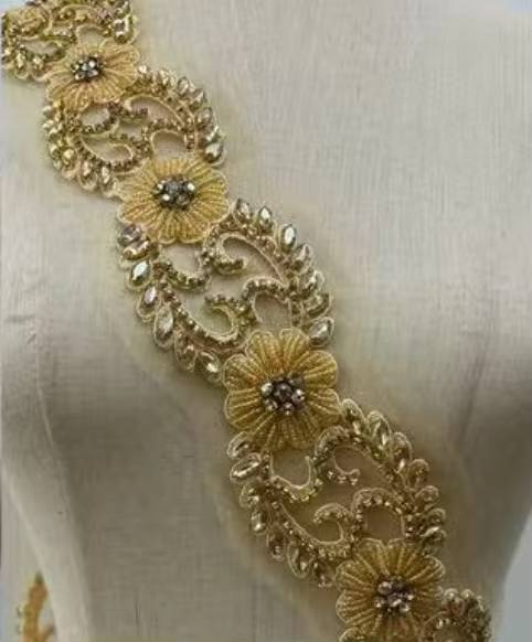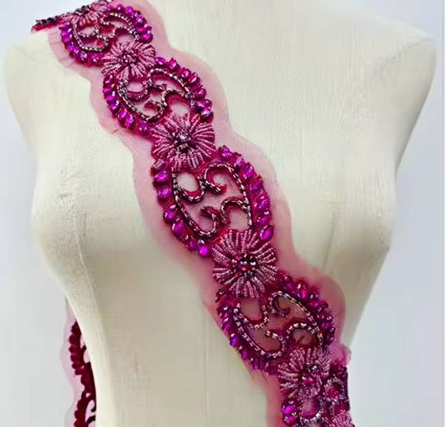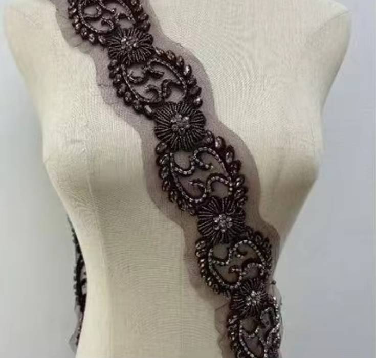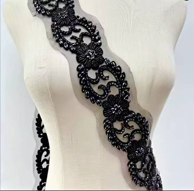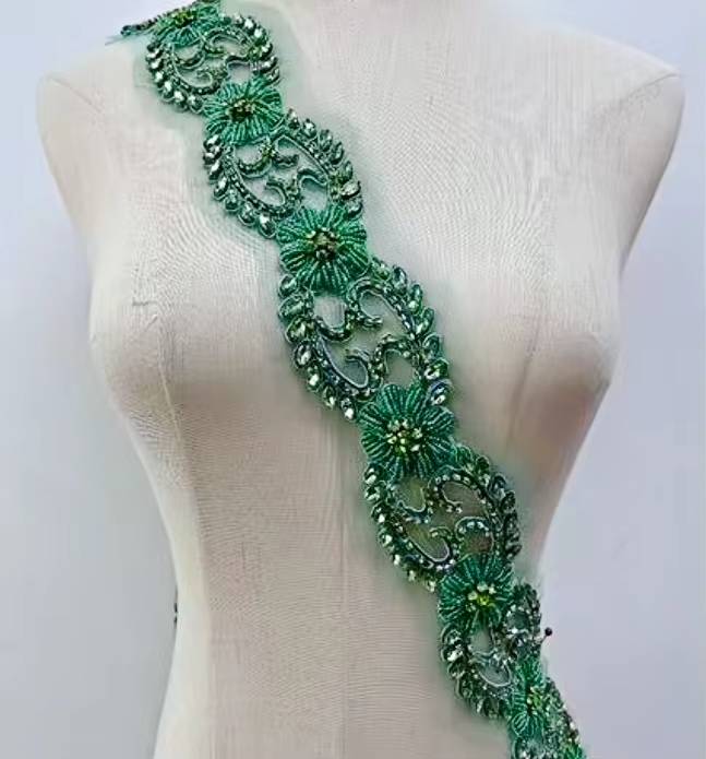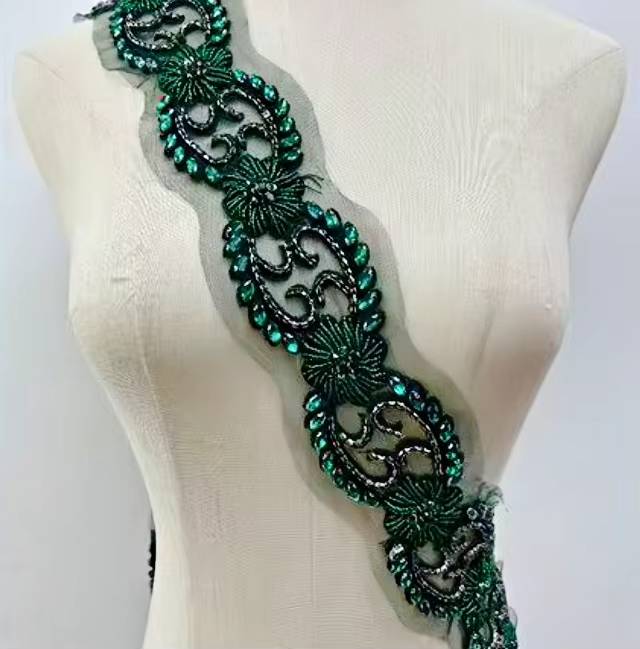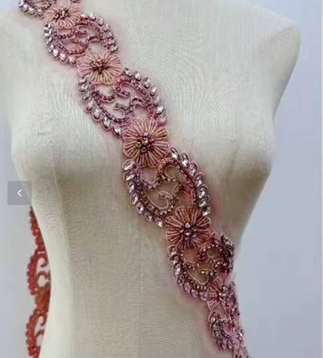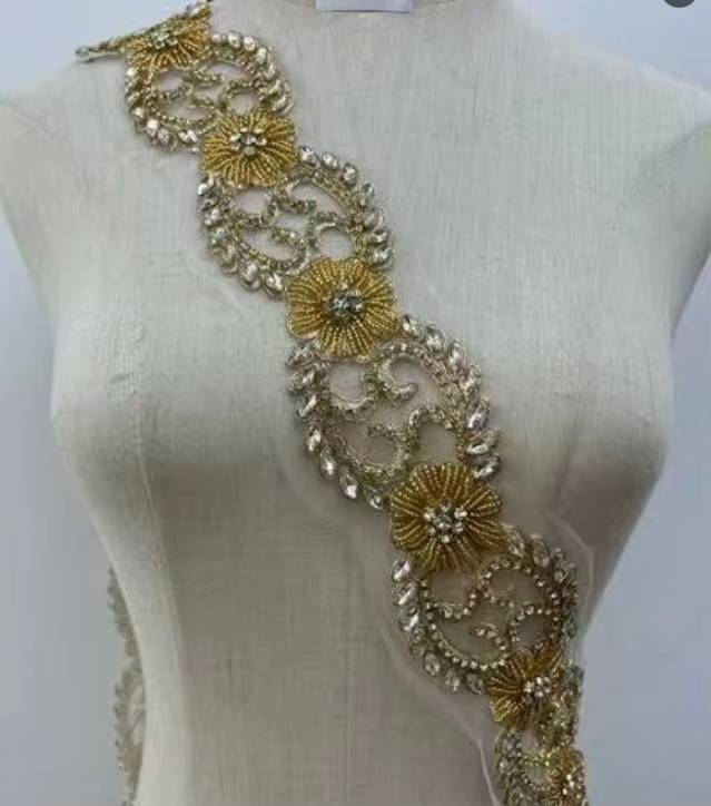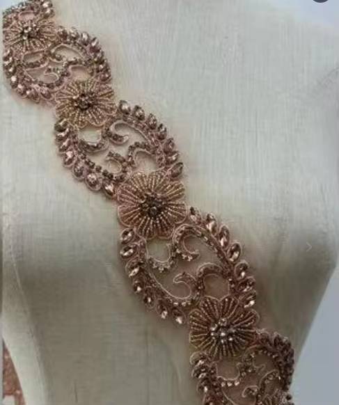 • 批发手工水晶珠绣花边镶边环保传统风格亮片珠饰新娘用装饰