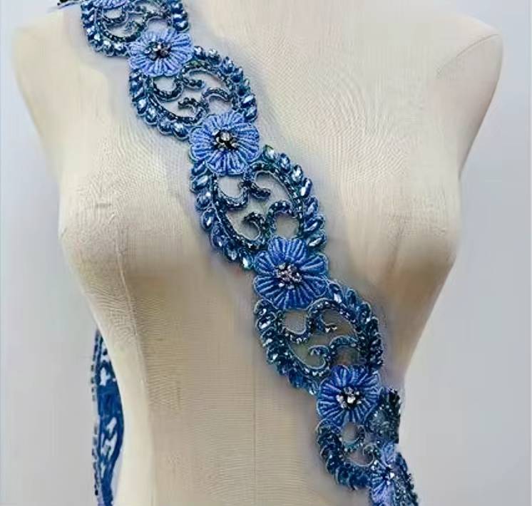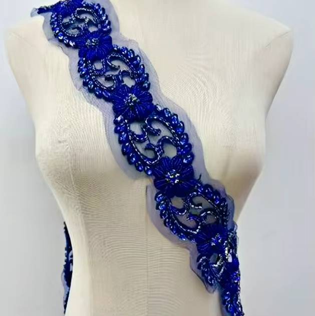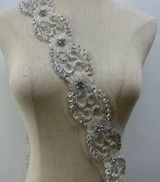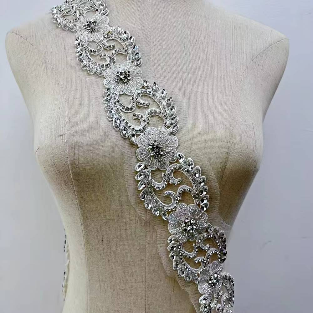 批发手工水晶珠绣花边镶边环保传统风格亮片珠饰新娘用装饰