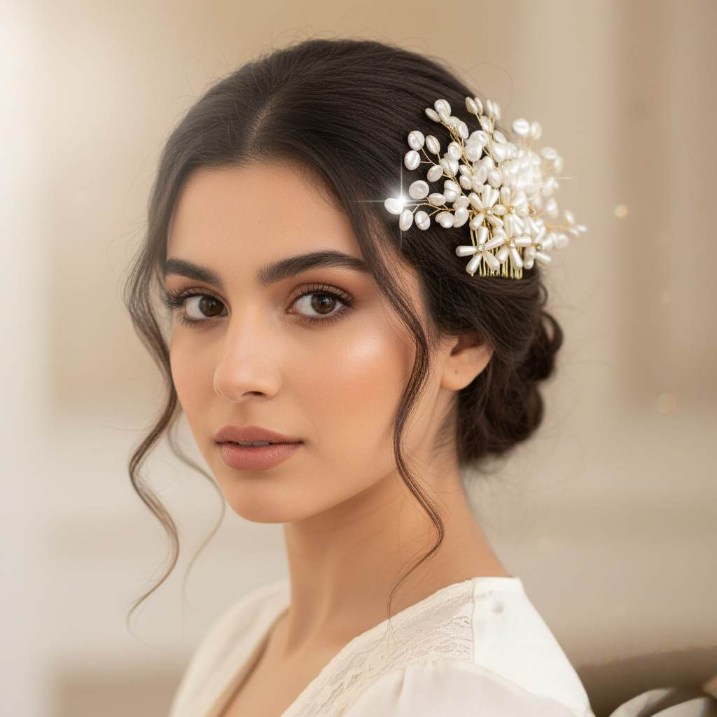 新品手工头饰新娘婚礼点缀发饰轻奢网状编织珍珠发夹